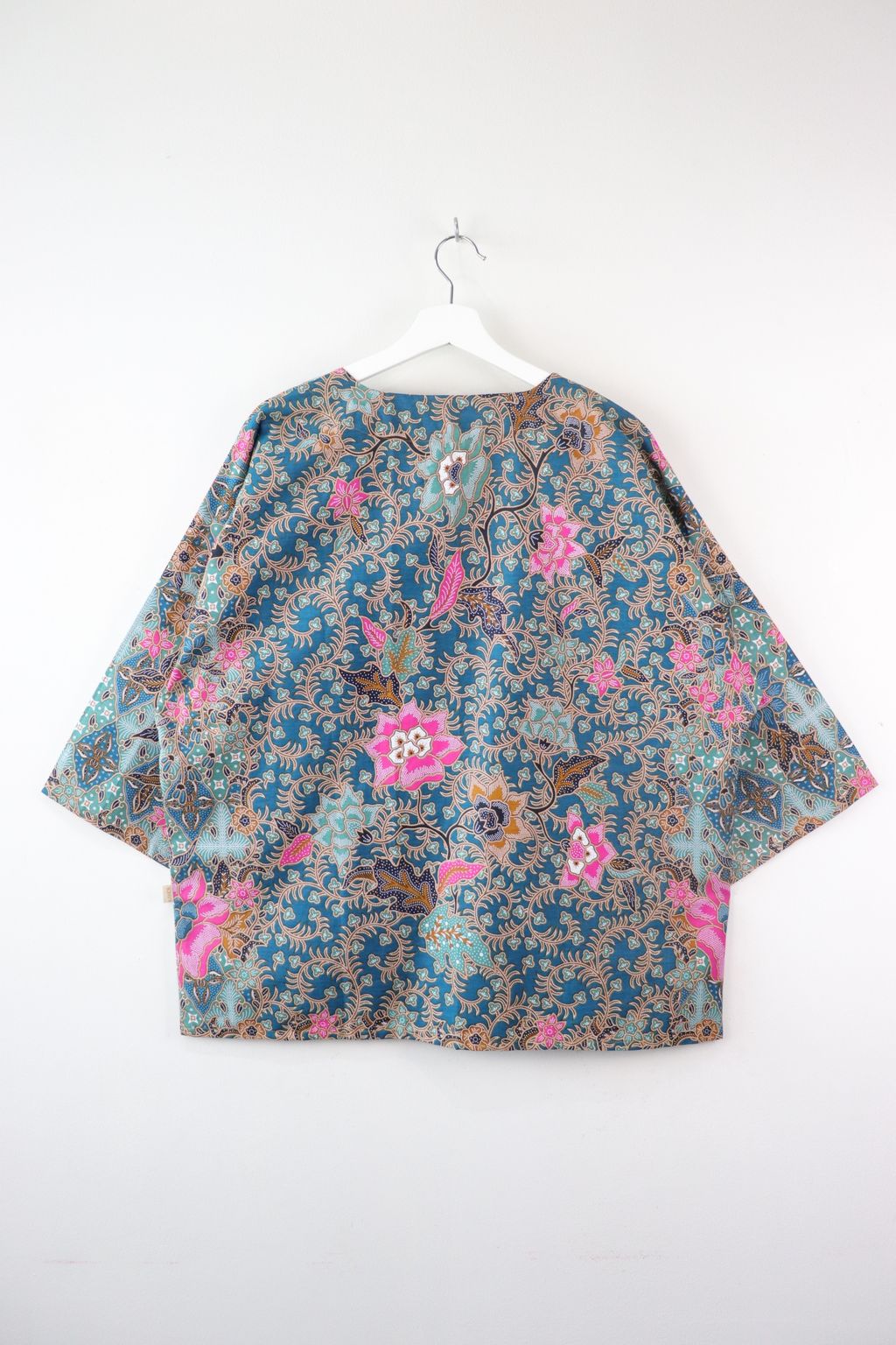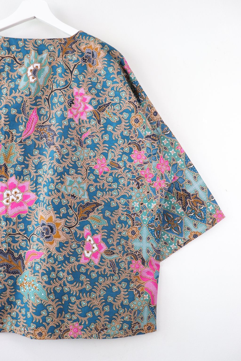 When we are stuck at home wearing a basic spaghetti strap top at home and the door bell rings, throw on this kimono before heading out to collect that parcel. Or if your boss calls you last minute for a zoom call. Throw on this batik kimono!