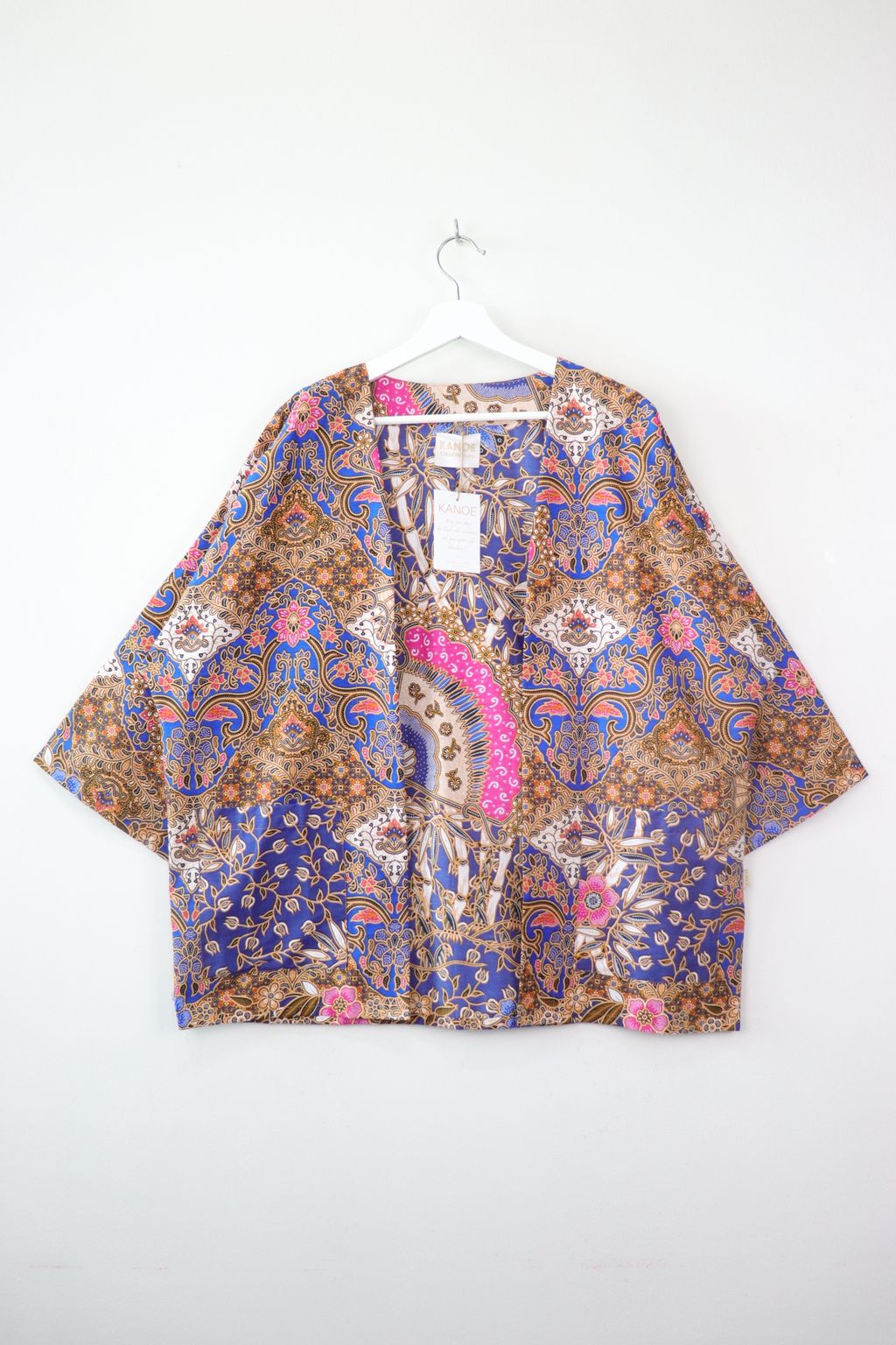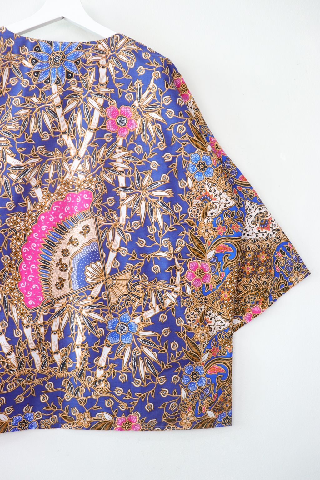 When we are stuck at home wearing a basic spaghetti strap top at home and the door bell rings, throw on this kimono before heading out to collect that parcel. Or if your boss calls you last minute for a zoom call. Throw on this batik kimono!