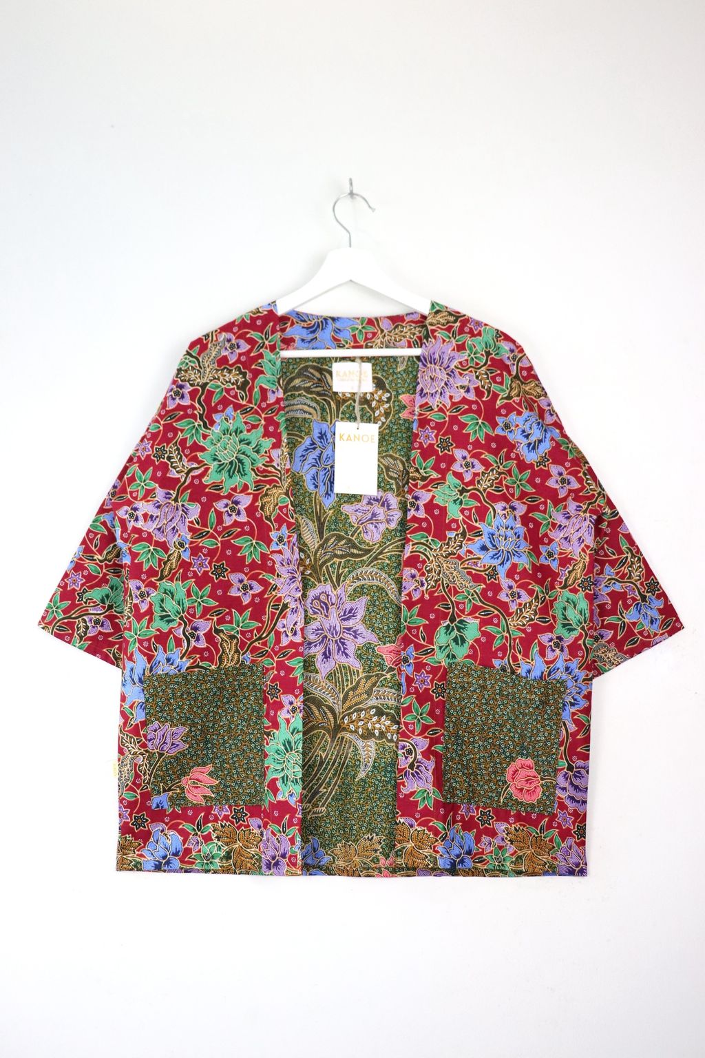 When we are stuck at home wearing a basic spaghetti strap top at home and the door bell rings, throw on this kimono before heading out to collect that parcel. Or if your boss calls you last minute for a zoom call. Throw on this batik kimono!