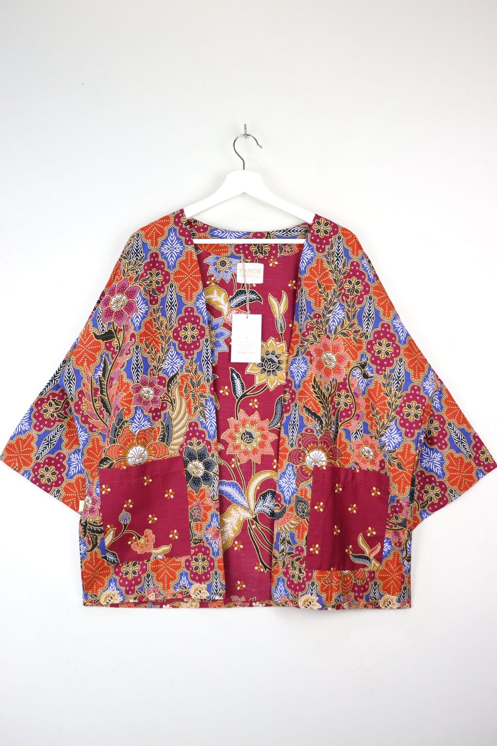 When we are stuck at home wearing a basic spaghetti strap top at home and the door bell rings, throw on this kimono before heading out to collect that parcel. Or if your boss calls you last minute for a zoom call. Throw on this batik kimono!