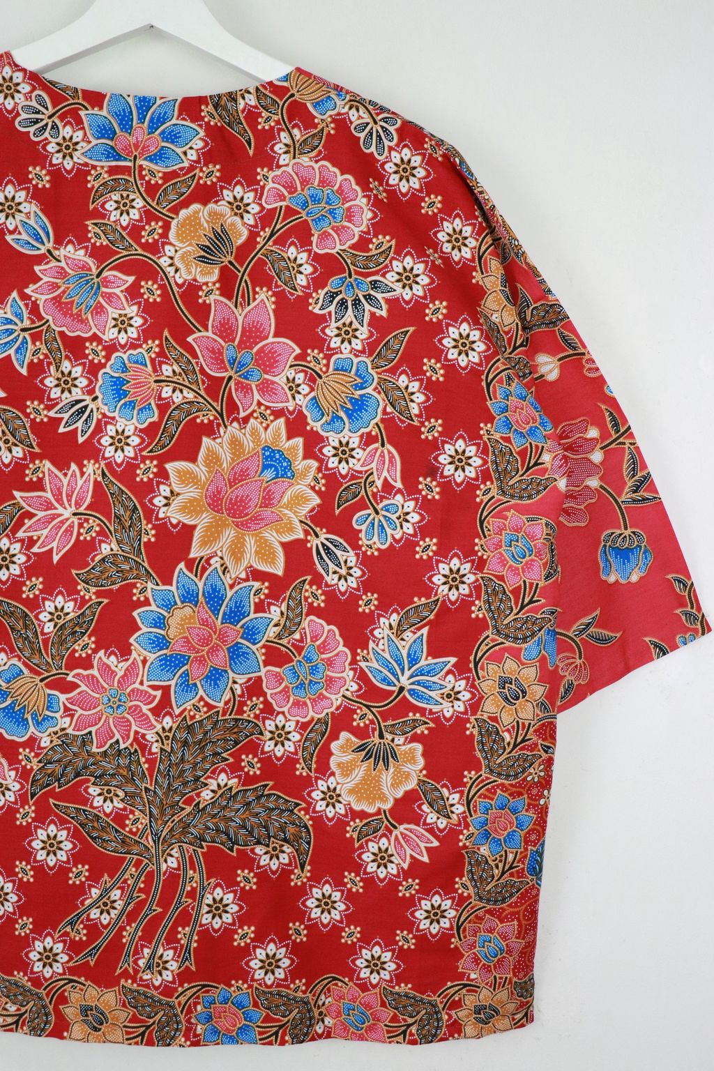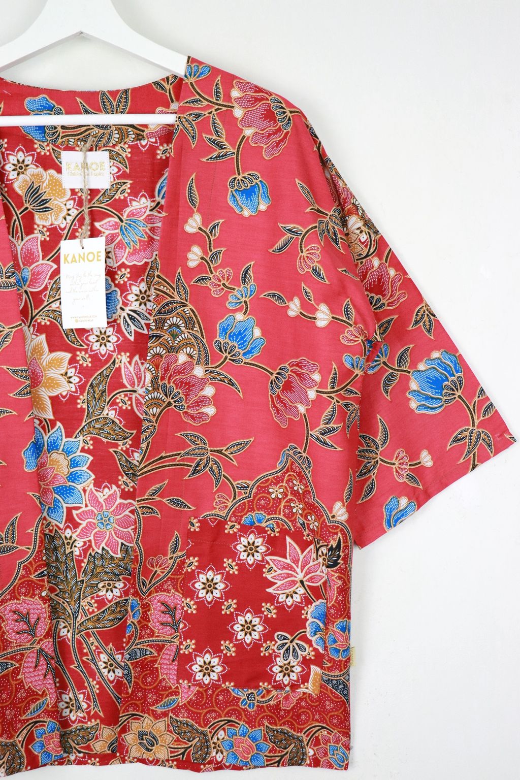 When we are stuck at home wearing a basic spaghetti strap top at home and the door bell rings, throw on this kimono before heading out to collect that parcel. Or if your boss calls you last minute for a zoom call. Throw on this batik kimono!