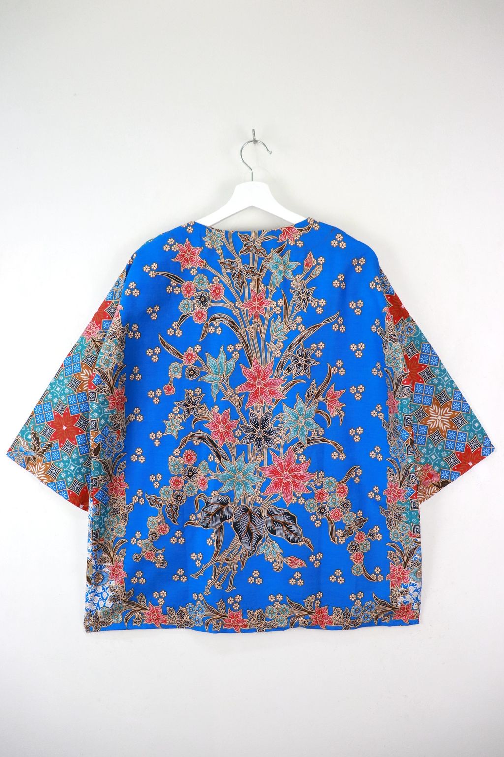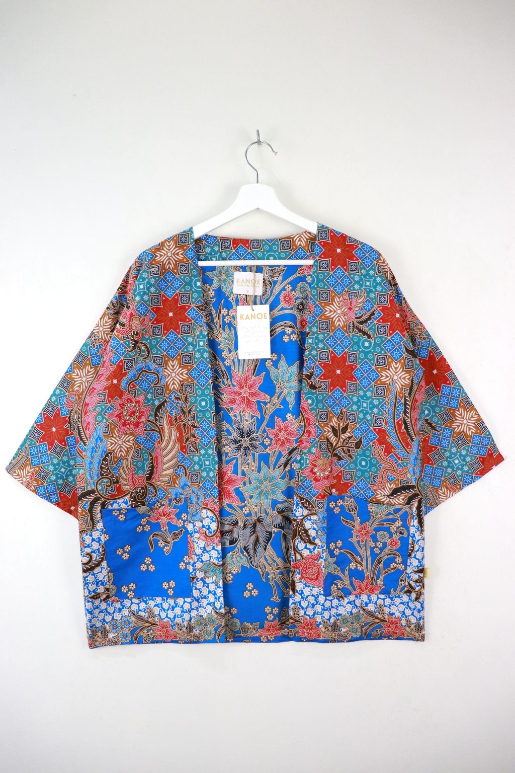 When we are stuck at home wearing a basic spaghetti strap top at home and the door bell rings, throw on this kimono before heading out to collect that parcel. Or if your boss calls you last minute for a zoom call. Throw on this batik kimono!