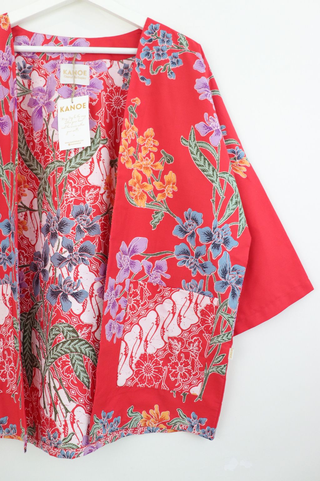 When we are stuck at home wearing a basic spaghetti strap top at home and the door bell rings, throw on this kimono before heading out to collect that parcel. Or if your boss calls you last minute for a zoom call. Throw on this batik kimono!