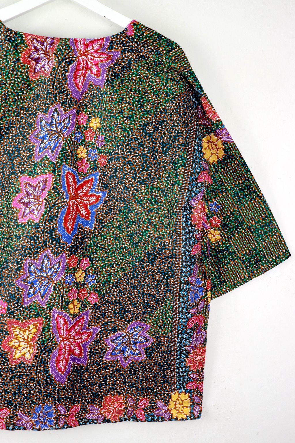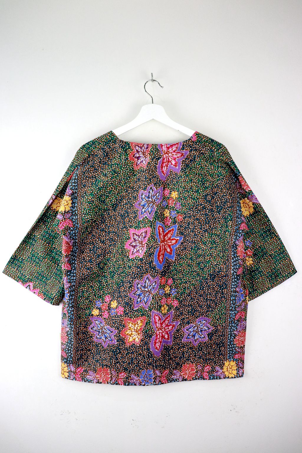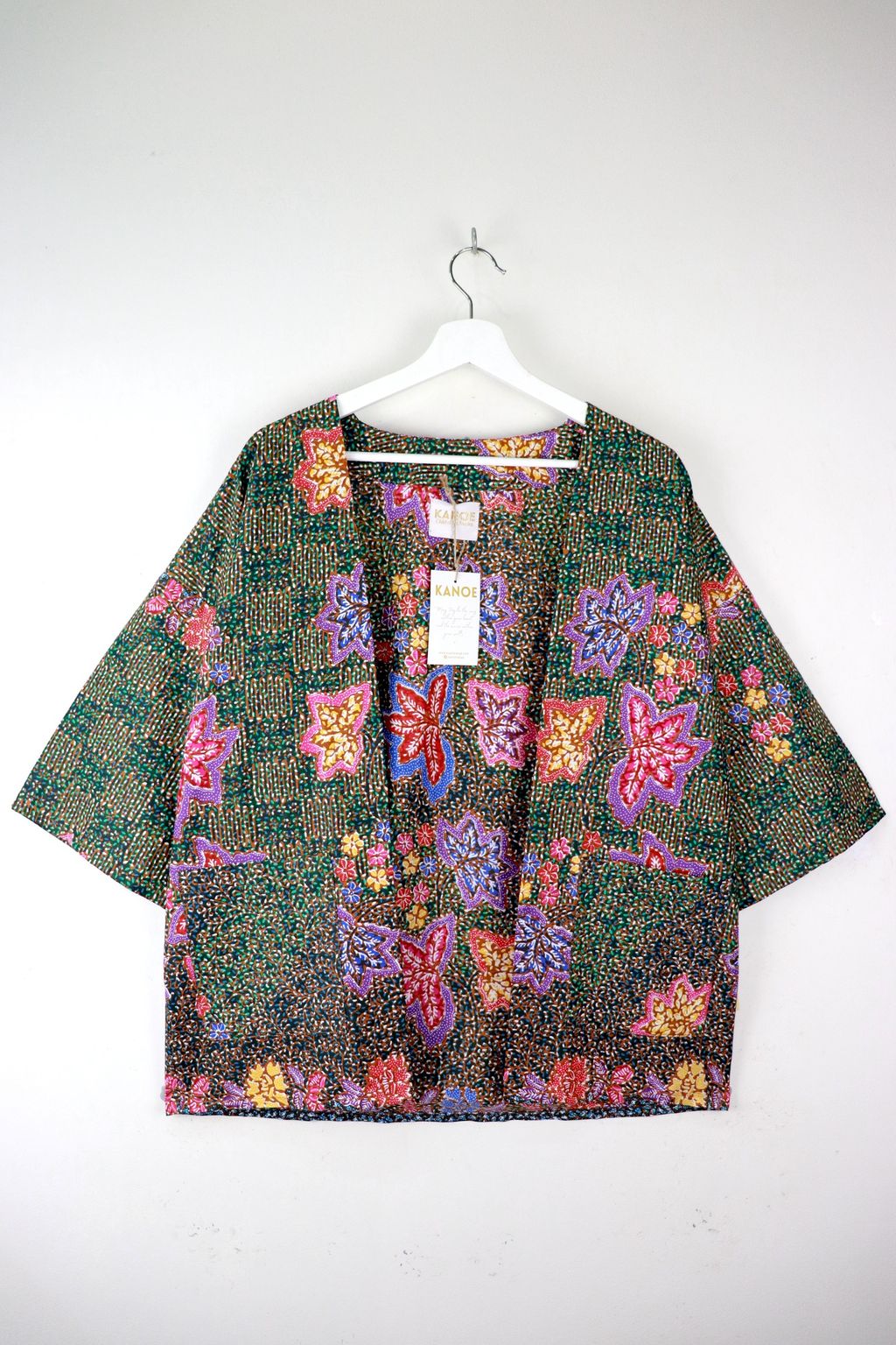 When we are stuck at home wearing a basic spaghetti strap top at home and the door bell rings, throw on this kimono before heading out to collect that parcel. Or if your boss calls you last minute for a zoom call. Throw on this batik kimono!