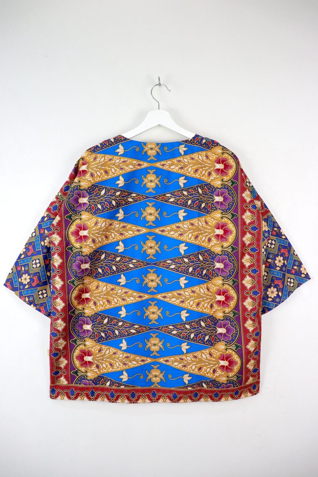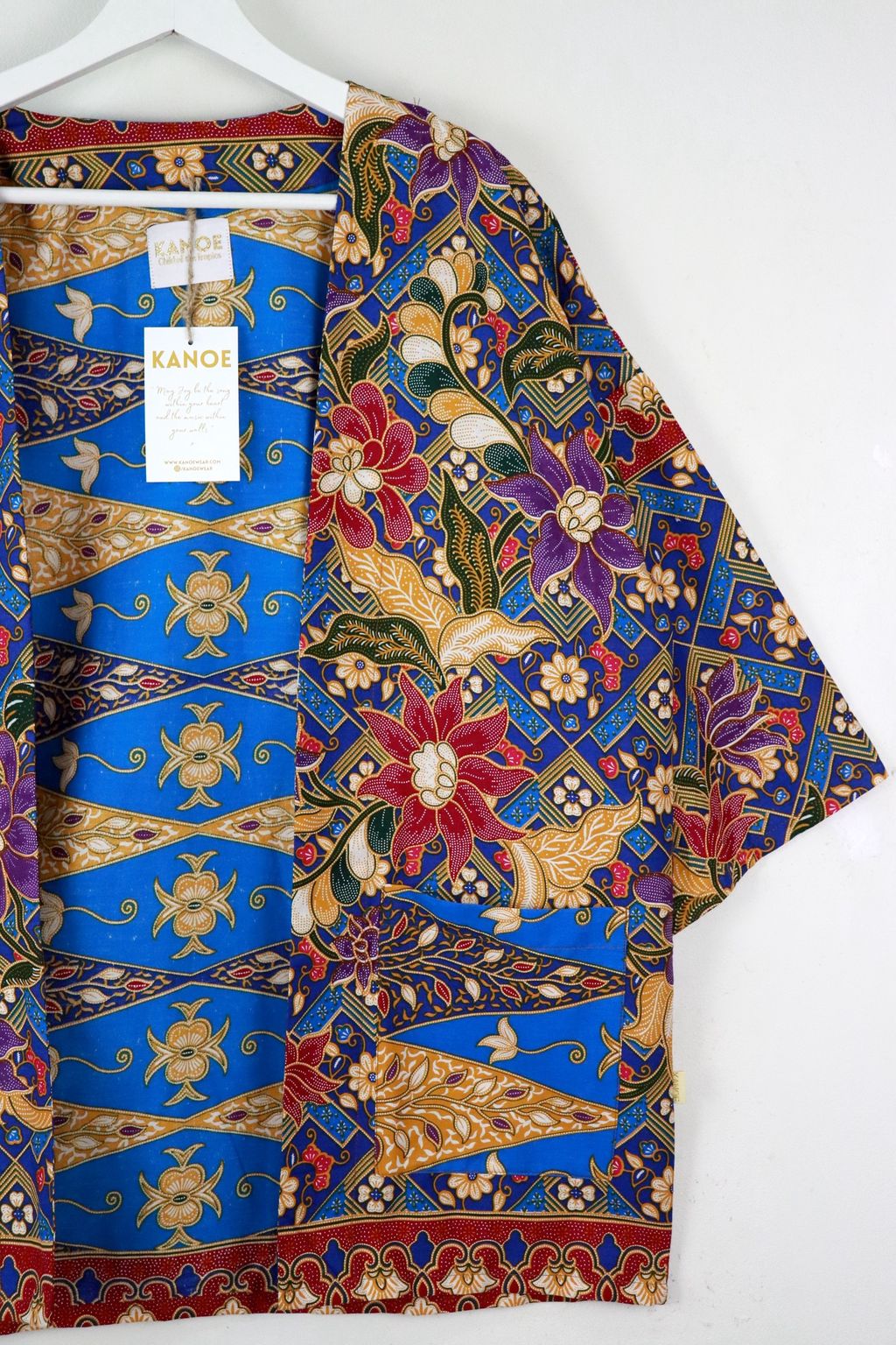 When we are stuck at home wearing a basic spaghetti strap top at home and the door bell rings, throw on this kimono before heading out to collect that parcel. Or if your boss calls you last minute for a zoom call. Throw on this batik kimono!