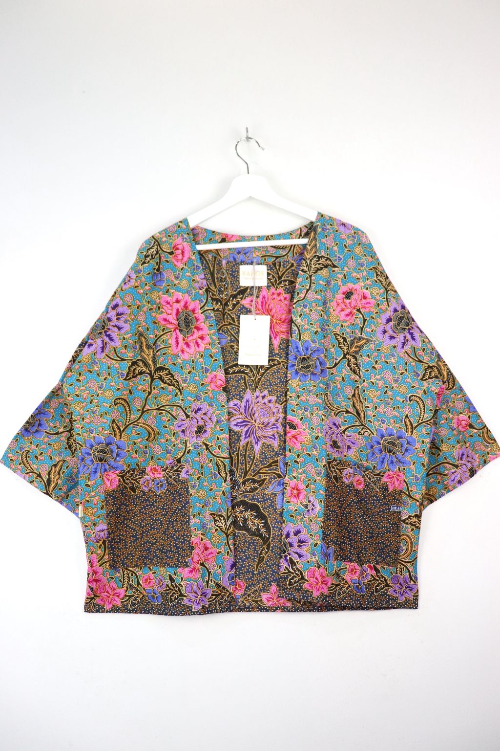 When we are stuck at home wearing a basic spaghetti strap top at home and the door bell rings, throw on this kimono before heading out to collect that parcel. Or if your boss calls you last minute for a zoom call. Throw on this batik kimono!