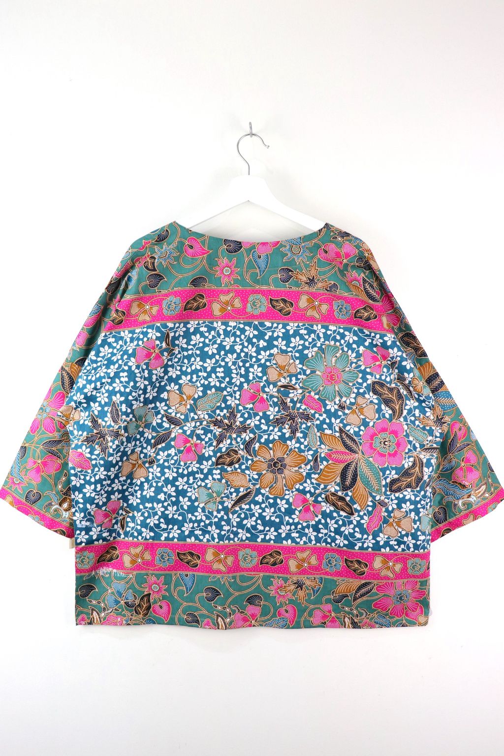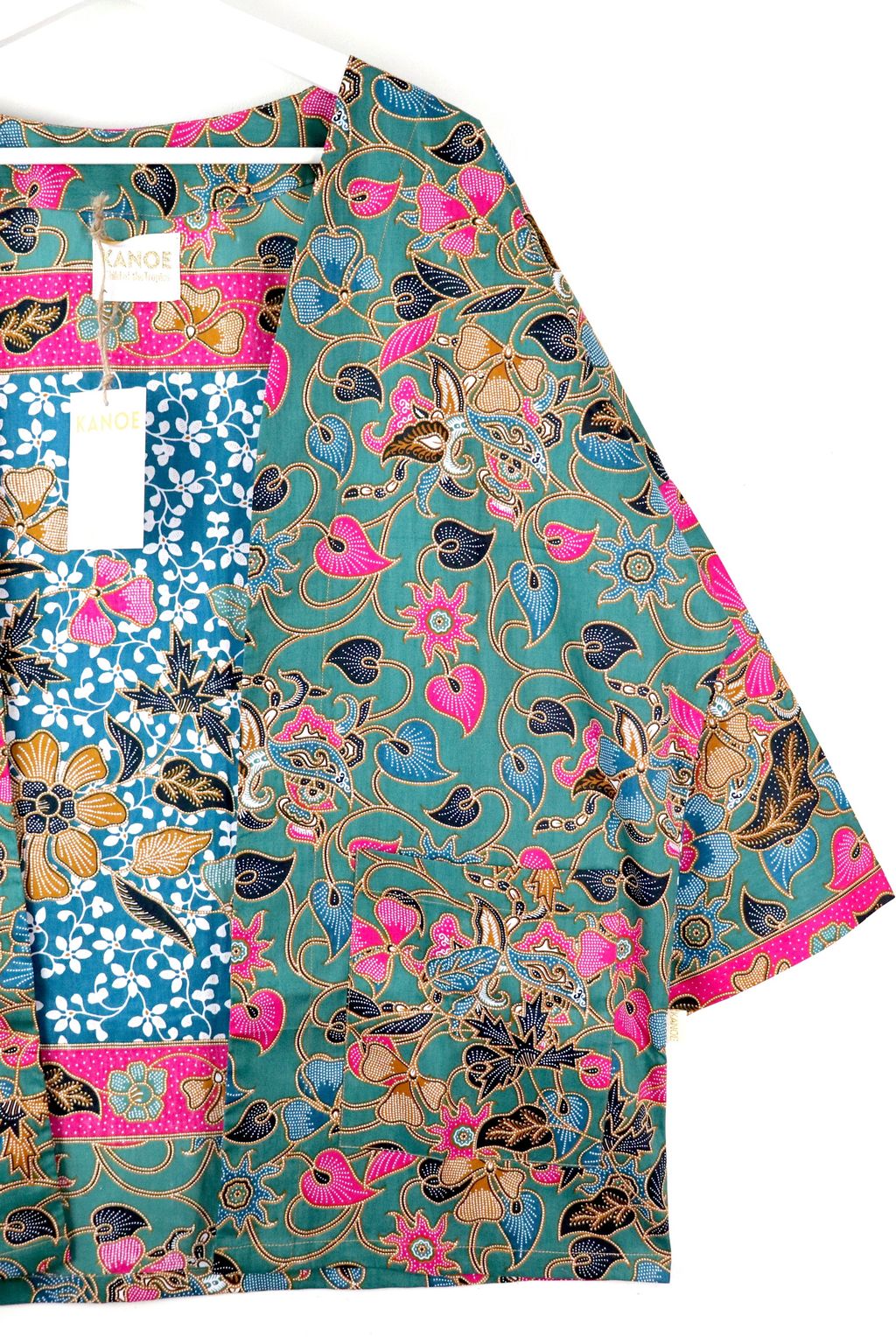 When we are stuck at home wearing a basic spaghetti strap top at home and the door bell rings, throw on this kimono before heading out to collect that parcel. Or if your boss calls you last minute for a zoom call. Throw on this batik kimono!