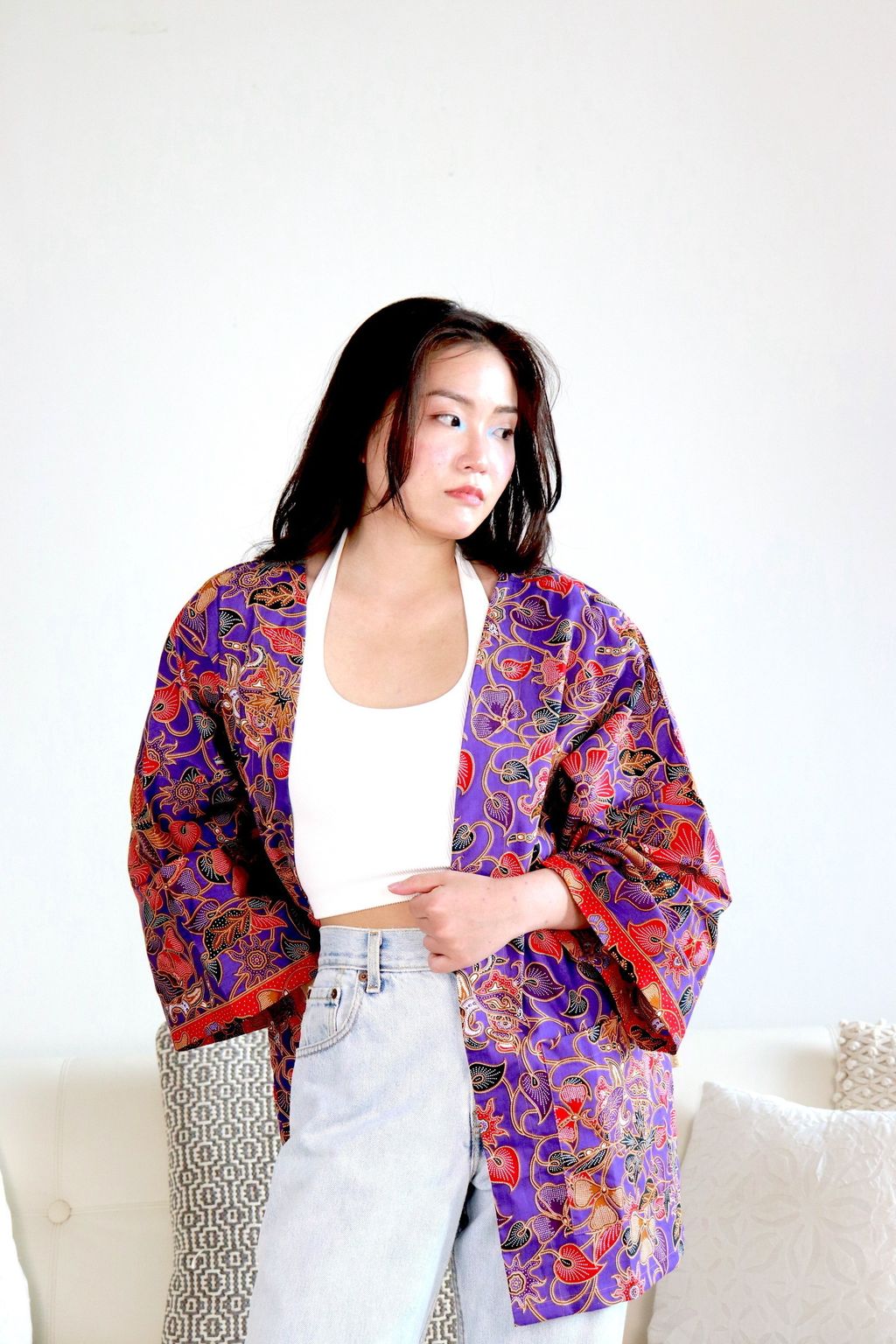 Our batik kimono worn over your basics will add that beautiful Malaysian cultural touch that reminds you of your heritage or just to appreciate the art of our region. Keeps you feeling comfortable while indoors and great for those chilly rainy days. Definitely a piece for you to wear throughout the seasons. Made of 100% cotton, they are breathable and cooling, yet keeping you warm enough for comfort while indoors in the air conditioning.
