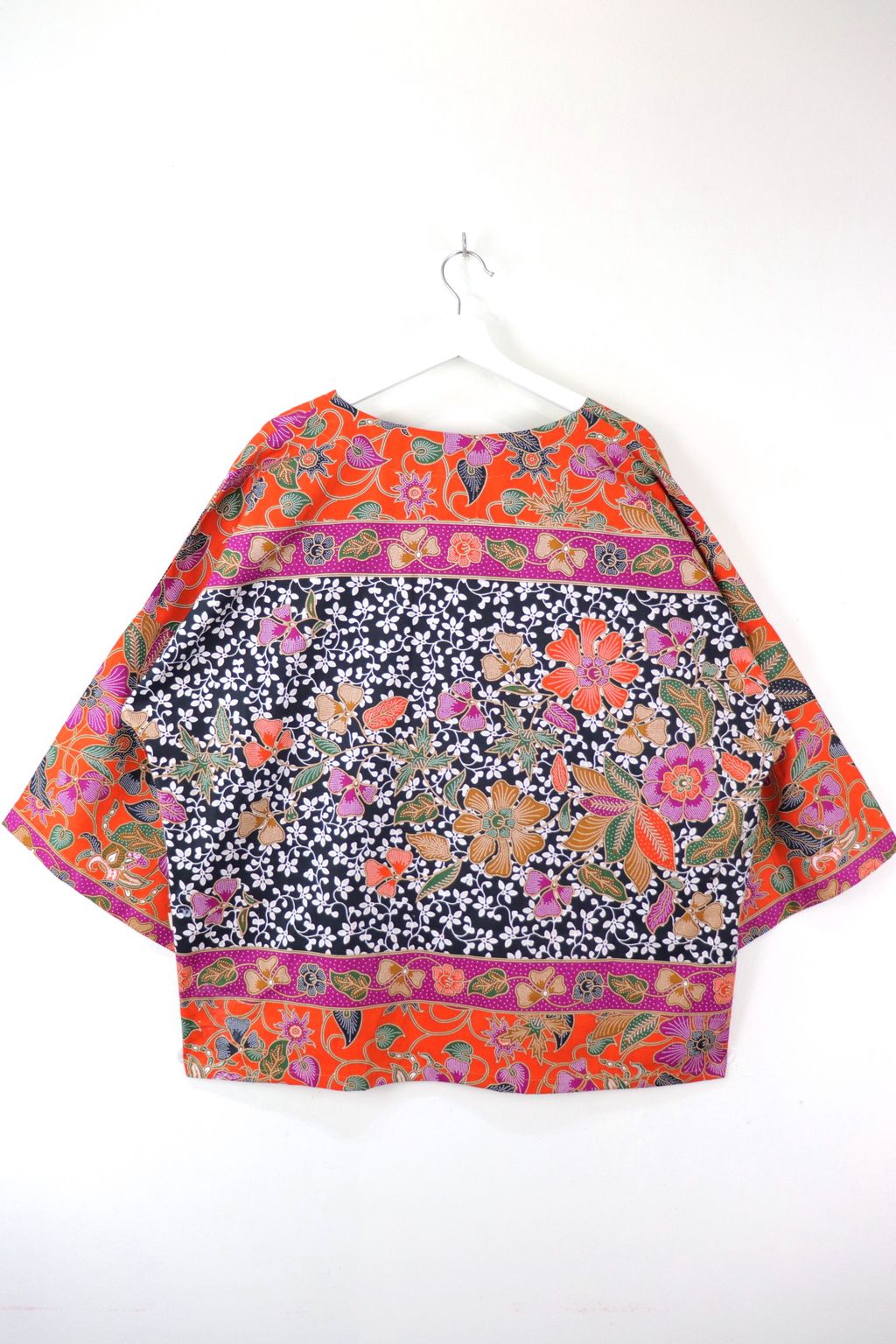 When we are stuck at home wearing a basic spaghetti strap top at home and the door bell rings, throw on this kimono before heading out to collect that parcel. Or if your boss calls you last minute for a zoom call. Throw on this batik kimono!