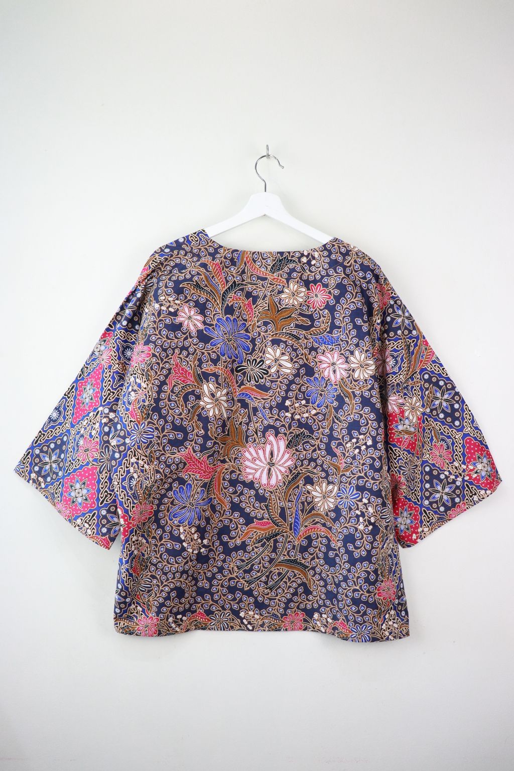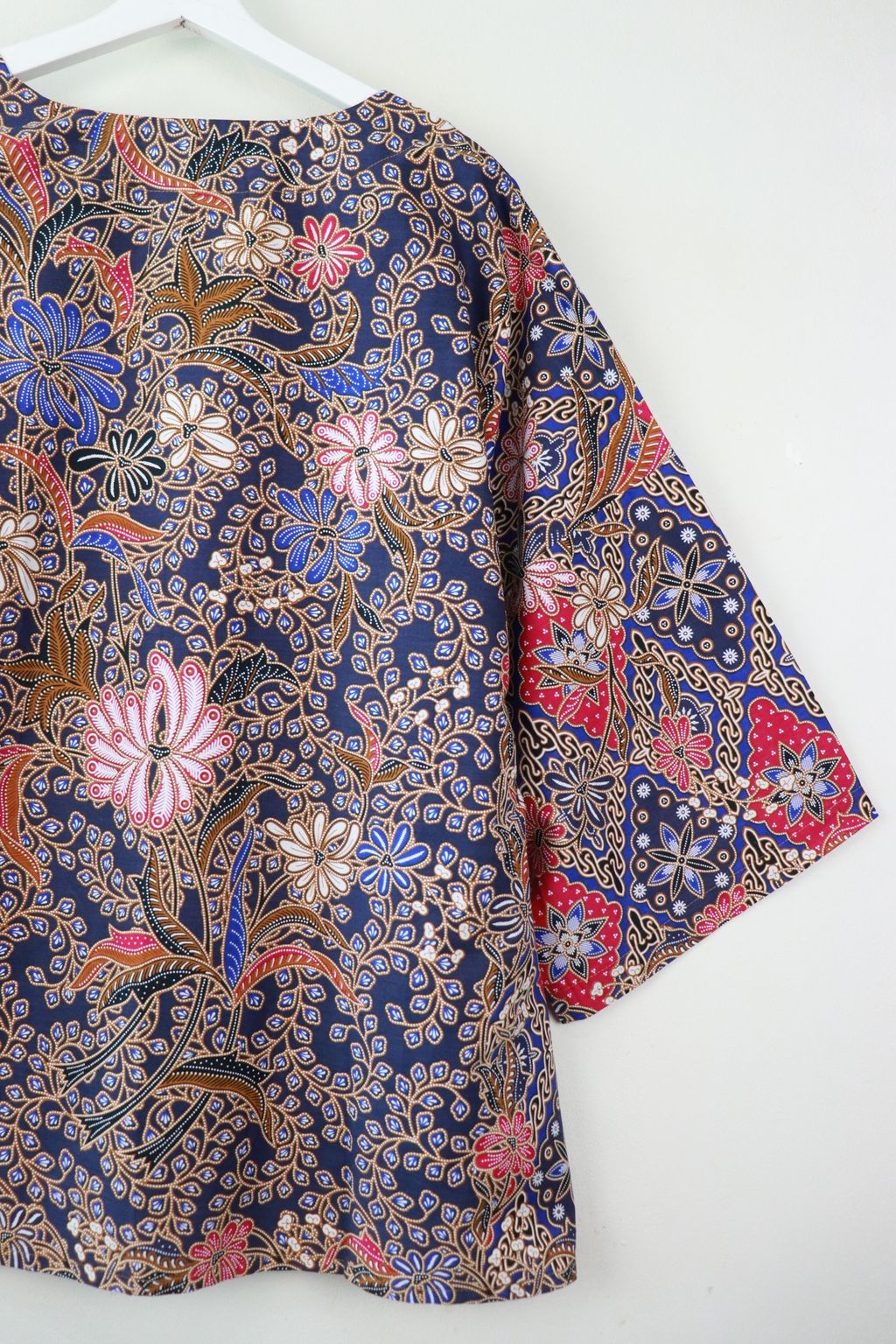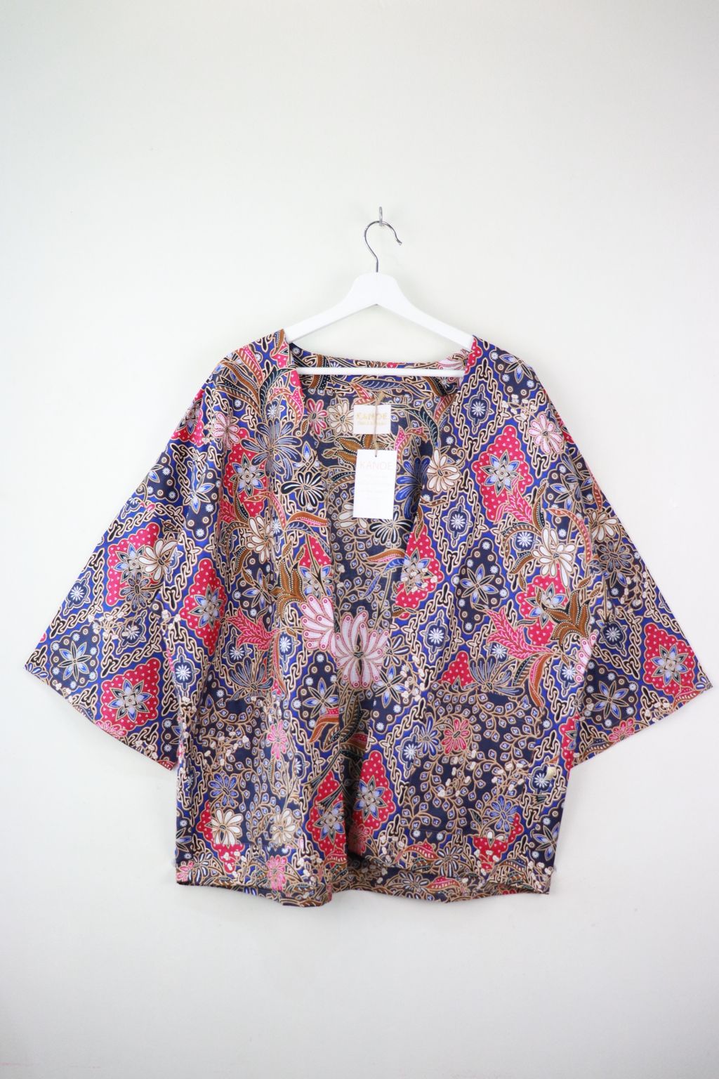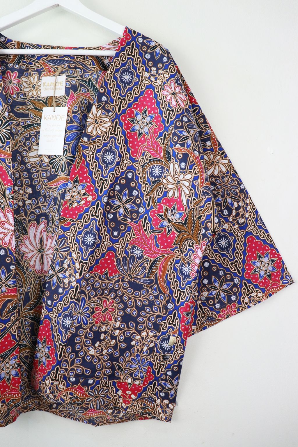 When we are stuck at home wearing a basic spaghetti strap top at home and the door bell rings, throw on this kimono before heading out to collect that parcel. Or if your boss calls you last minute for a zoom call. Throw on this batik kimono!