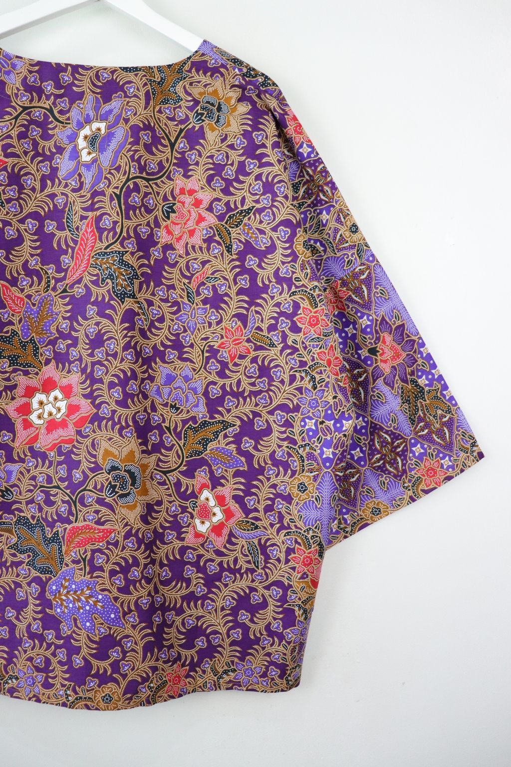 When we are stuck at home wearing a basic spaghetti strap top at home and the door bell rings, throw on this kimono before heading out to collect that parcel. Or if your boss calls you last minute for a zoom call. Throw on this batik kimono!