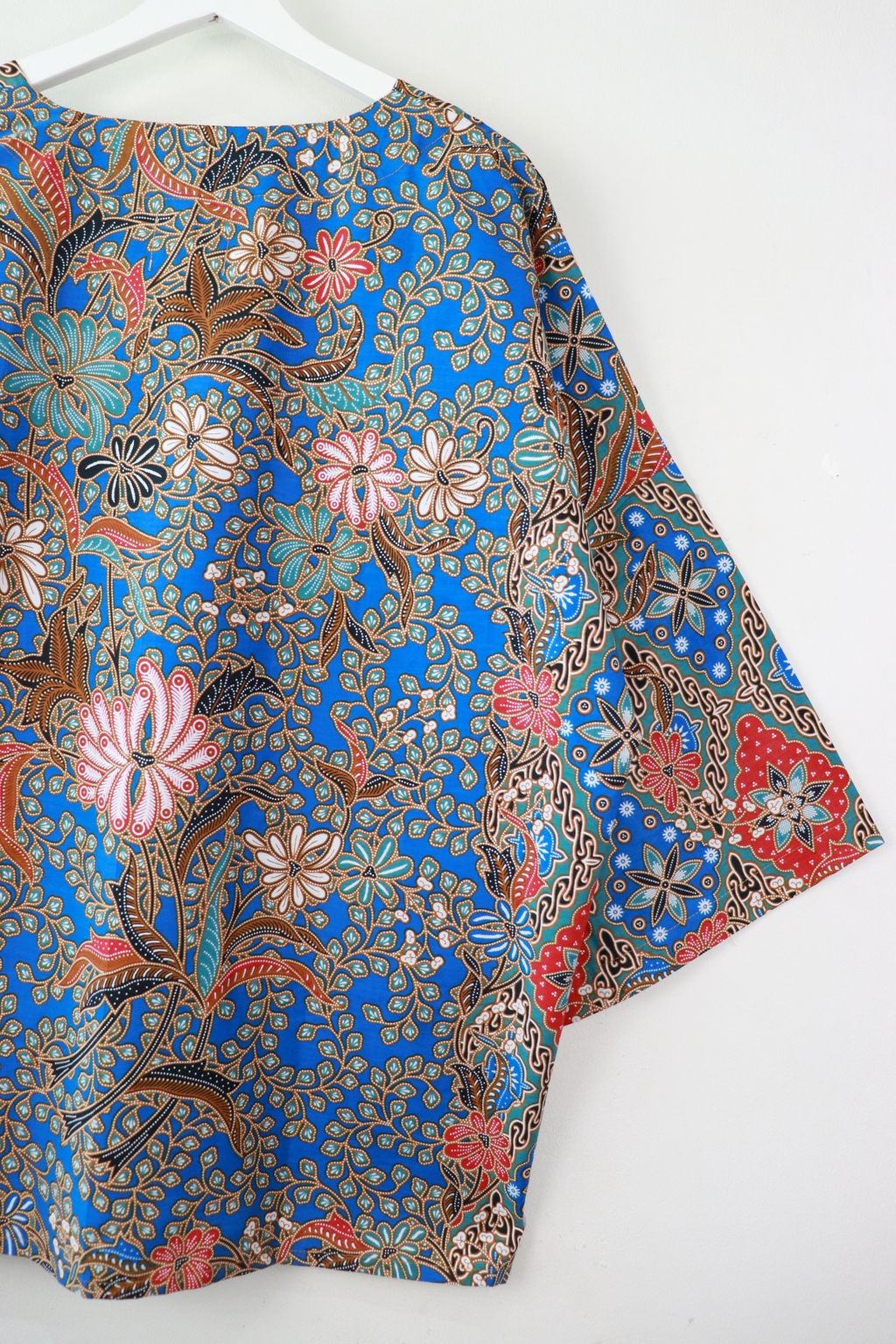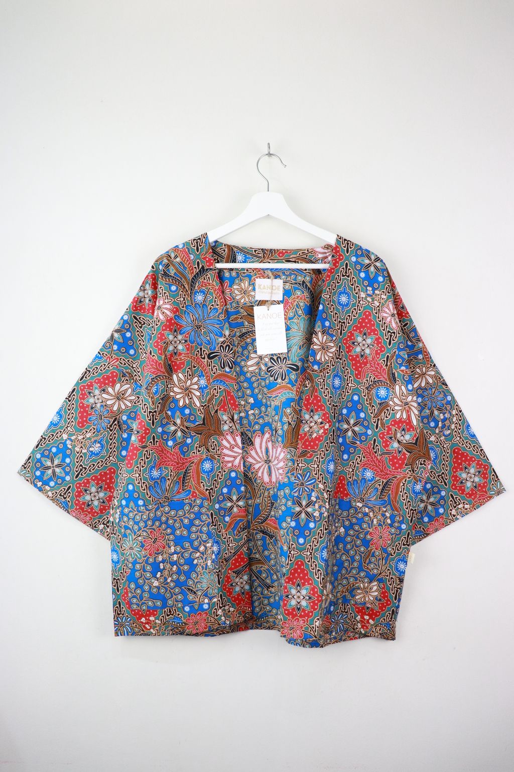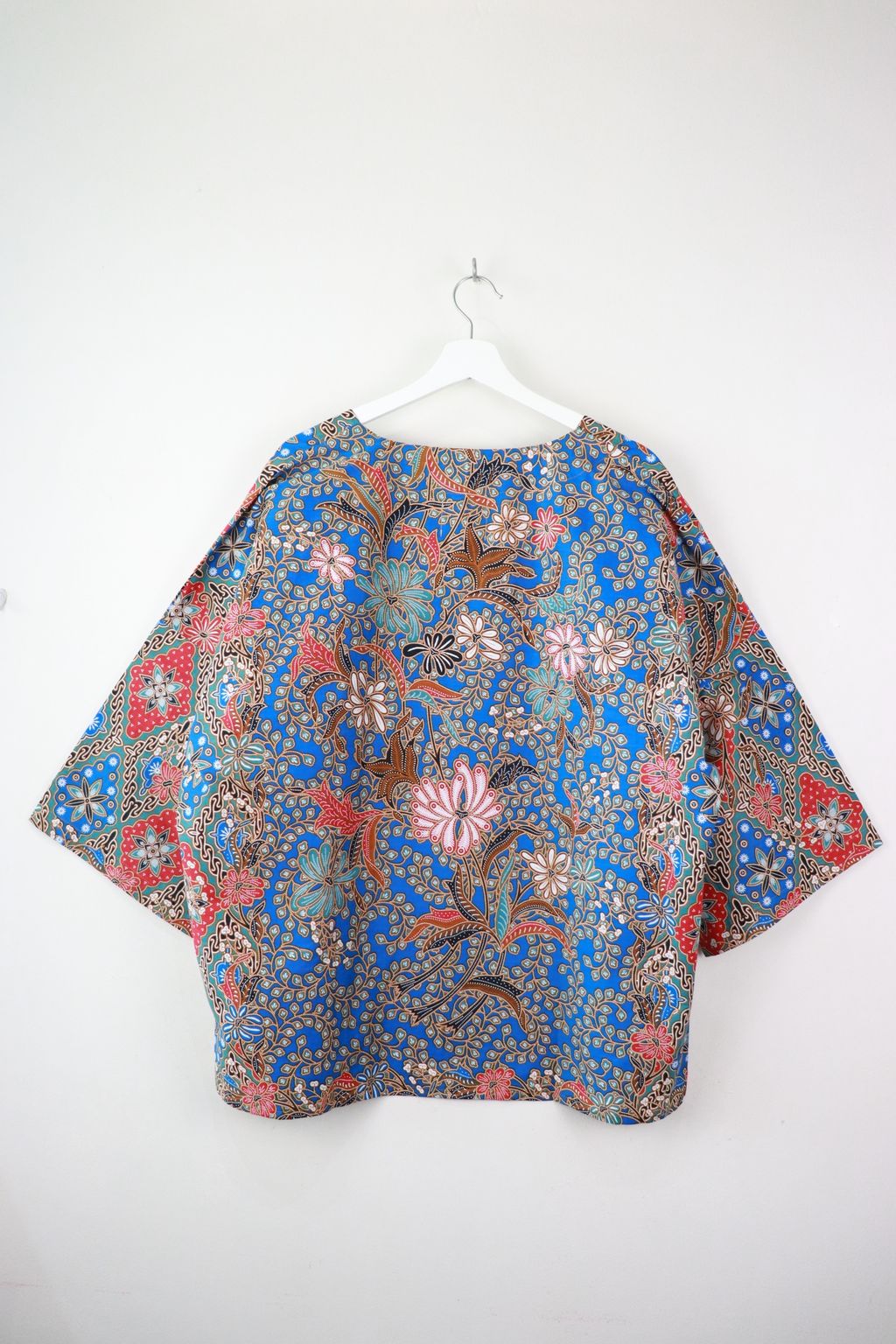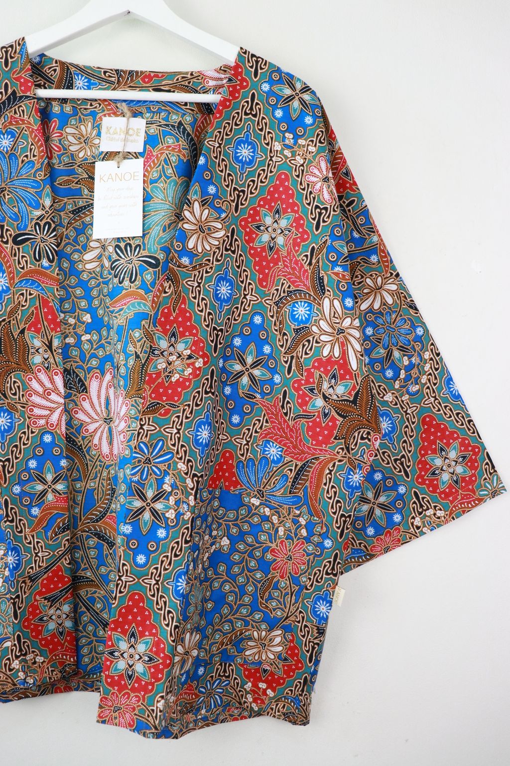 When we are stuck at home wearing a basic spaghetti strap top at home and the door bell rings, throw on this kimono before heading out to collect that parcel. Or if your boss calls you last minute for a zoom call. Throw on this batik kimono!