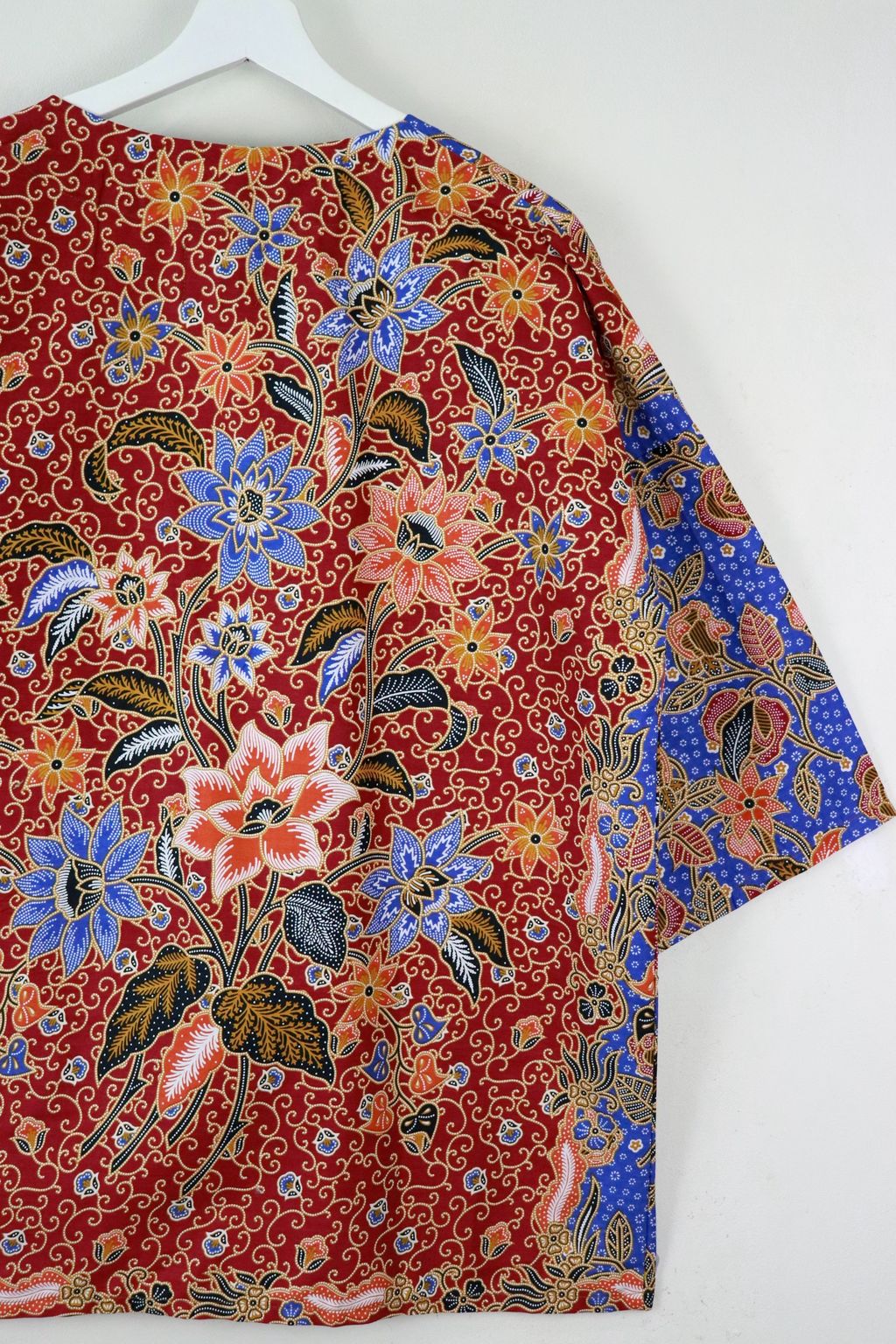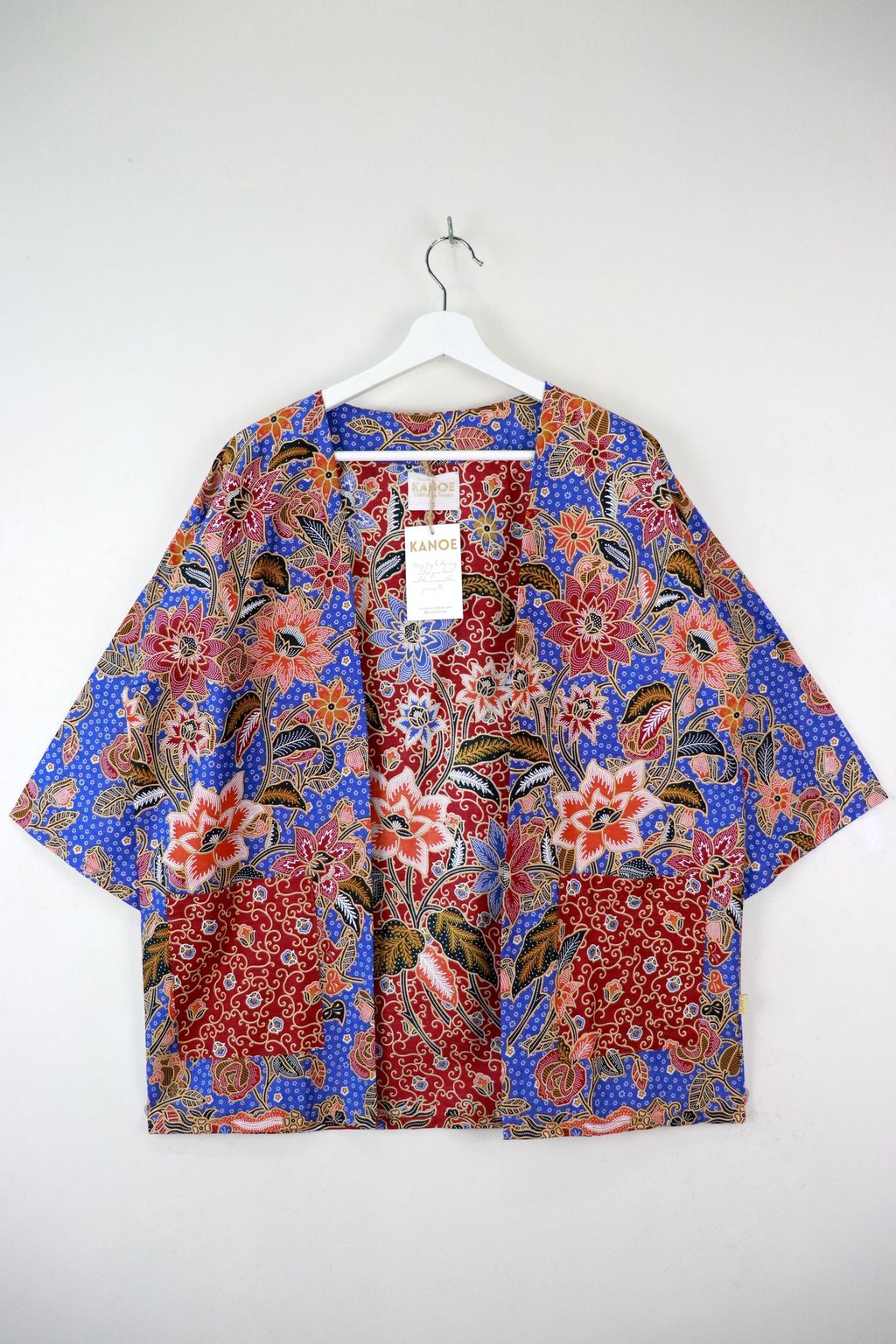 When we are stuck at home wearing a basic spaghetti strap top at home and the door bell rings, throw on this kimono before heading out to collect that parcel. Or if your boss calls you last minute for a zoom call. Throw on this batik kimono!