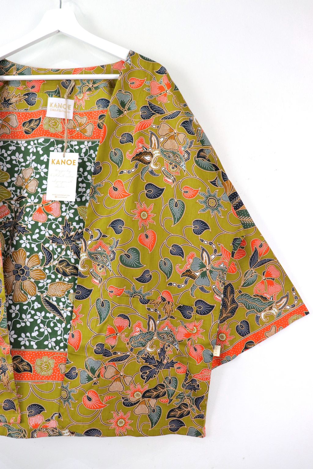 When we are stuck at home wearing a basic spaghetti strap top at home and the door bell rings, throw on this kimono before heading out to collect that parcel. Or if your boss calls you last minute for a zoom call. Throw on this batik kimono!