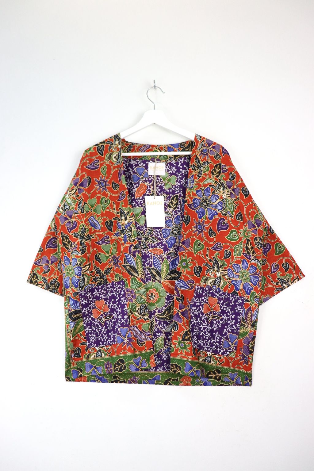 When we are stuck at home wearing a basic spaghetti strap top at home and the door bell rings, throw on this kimono before heading out to collect that parcel. Or if your boss calls you last minute for a zoom call. Throw on this batik kimono!