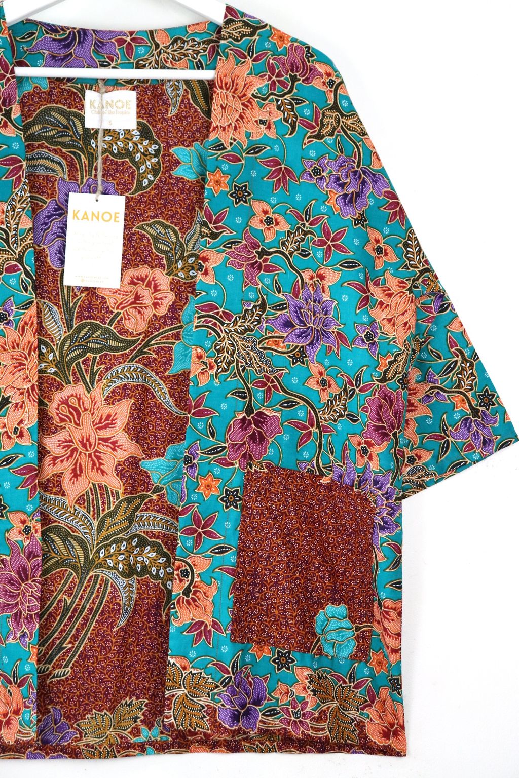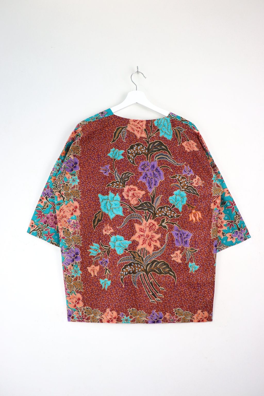 When we are stuck at home wearing a basic spaghetti strap top at home and the door bell rings, throw on this kimono before heading out to collect that parcel. Or if your boss calls you last minute for a zoom call. Throw on this batik kimono!