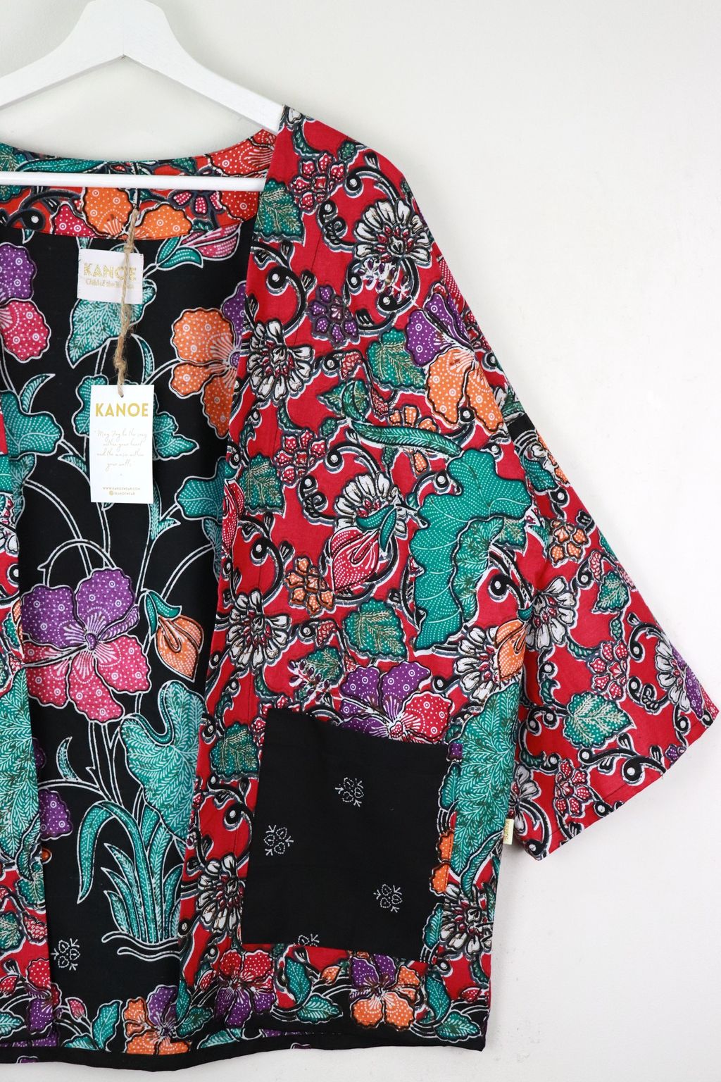 When we are stuck at home wearing a basic spaghetti strap top at home and the door bell rings, throw on this kimono before heading out to collect that parcel. Or if your boss calls you last minute for a zoom call. Throw on this batik kimono!