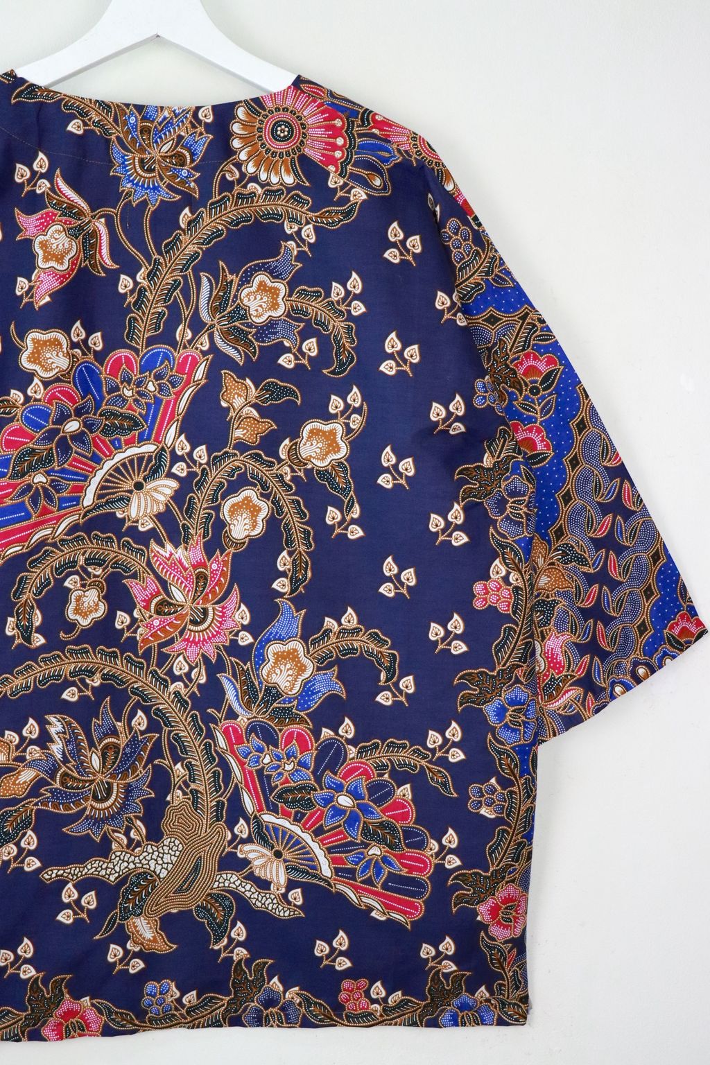 When we are stuck at home wearing a basic spaghetti strap top at home and the door bell rings, throw on this kimono before heading out to collect that parcel. Or if your boss calls you last minute for a zoom call. Throw on this batik kimono!