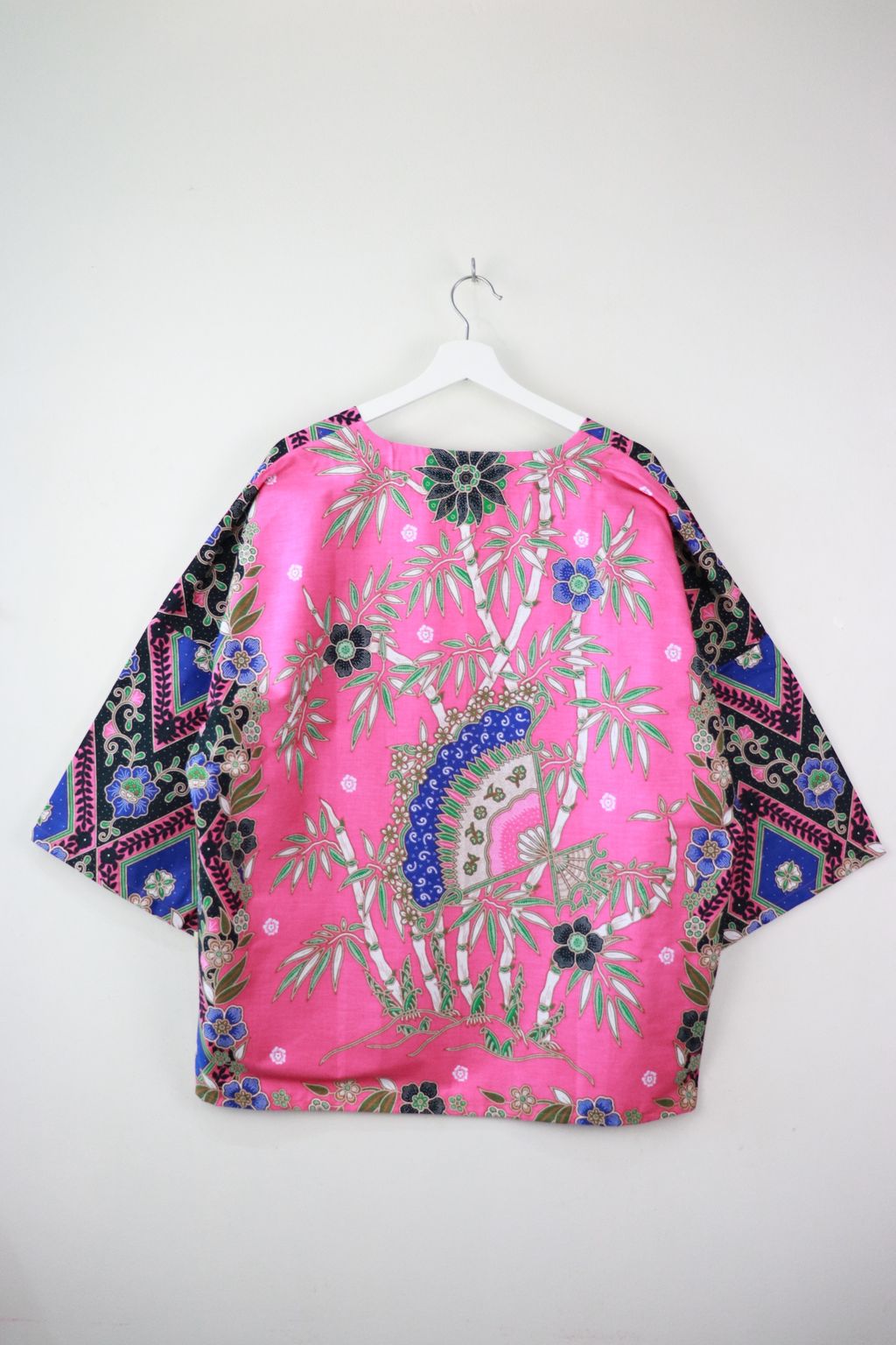 When we are stuck at home wearing a basic spaghetti strap top at home and the door bell rings, throw on this kimono before heading out to collect that parcel. Or if your boss calls you last minute for a zoom call. Throw on this batik kimono!