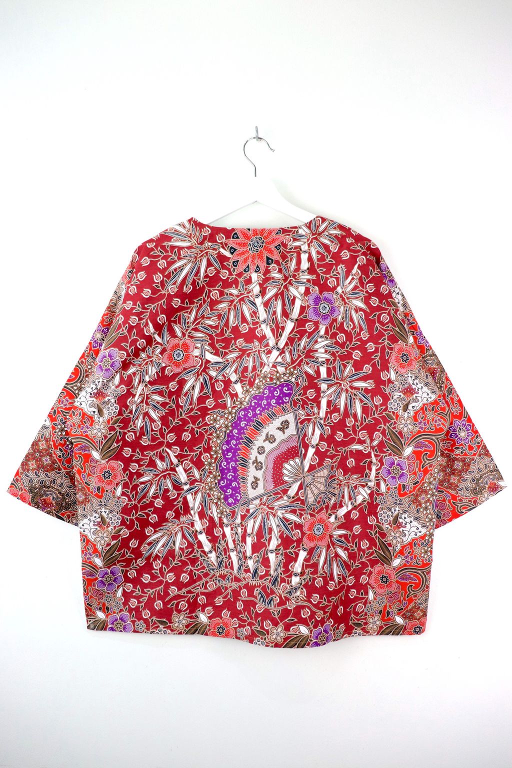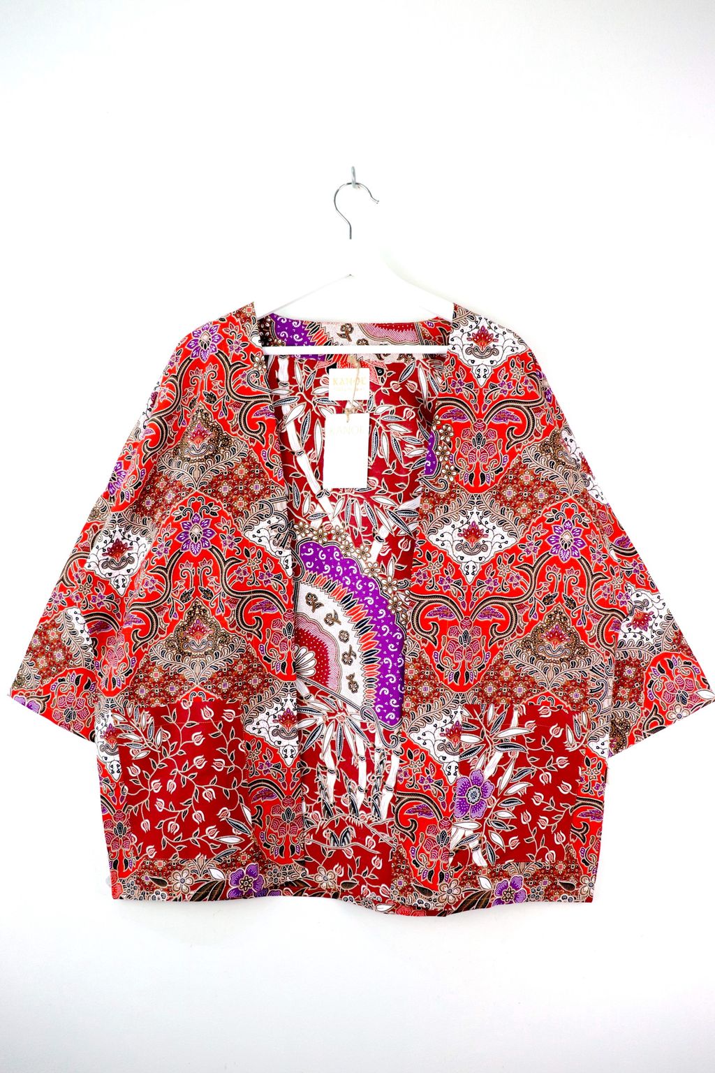When we are stuck at home wearing a basic spaghetti strap top at home and the door bell rings, throw on this kimono before heading out to collect that parcel. Or if your boss calls you last minute for a zoom call. Throw on this batik kimono!