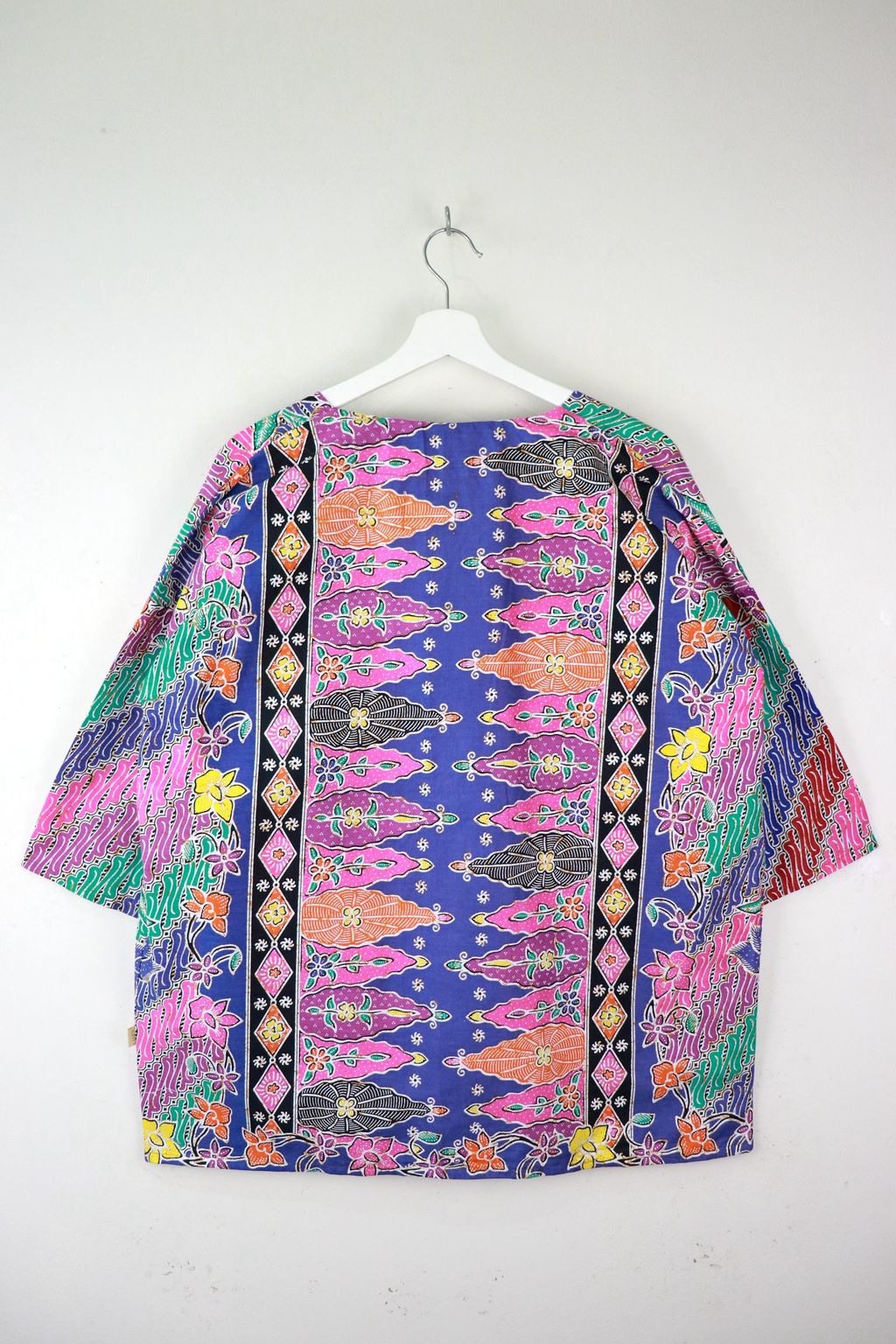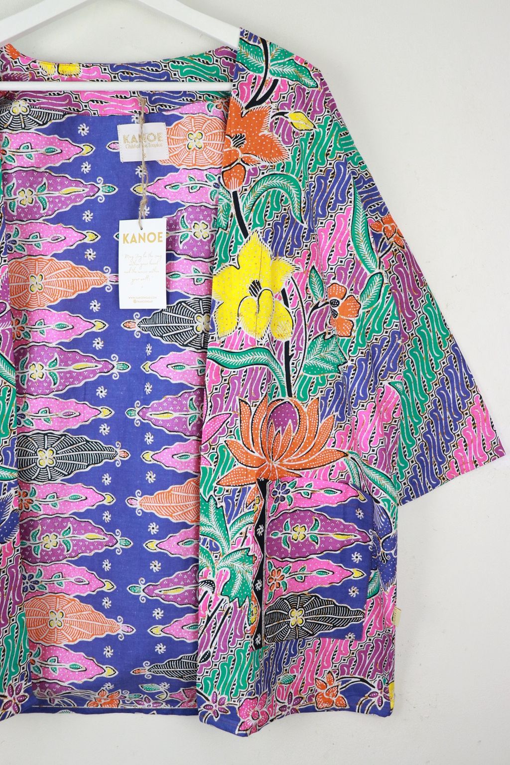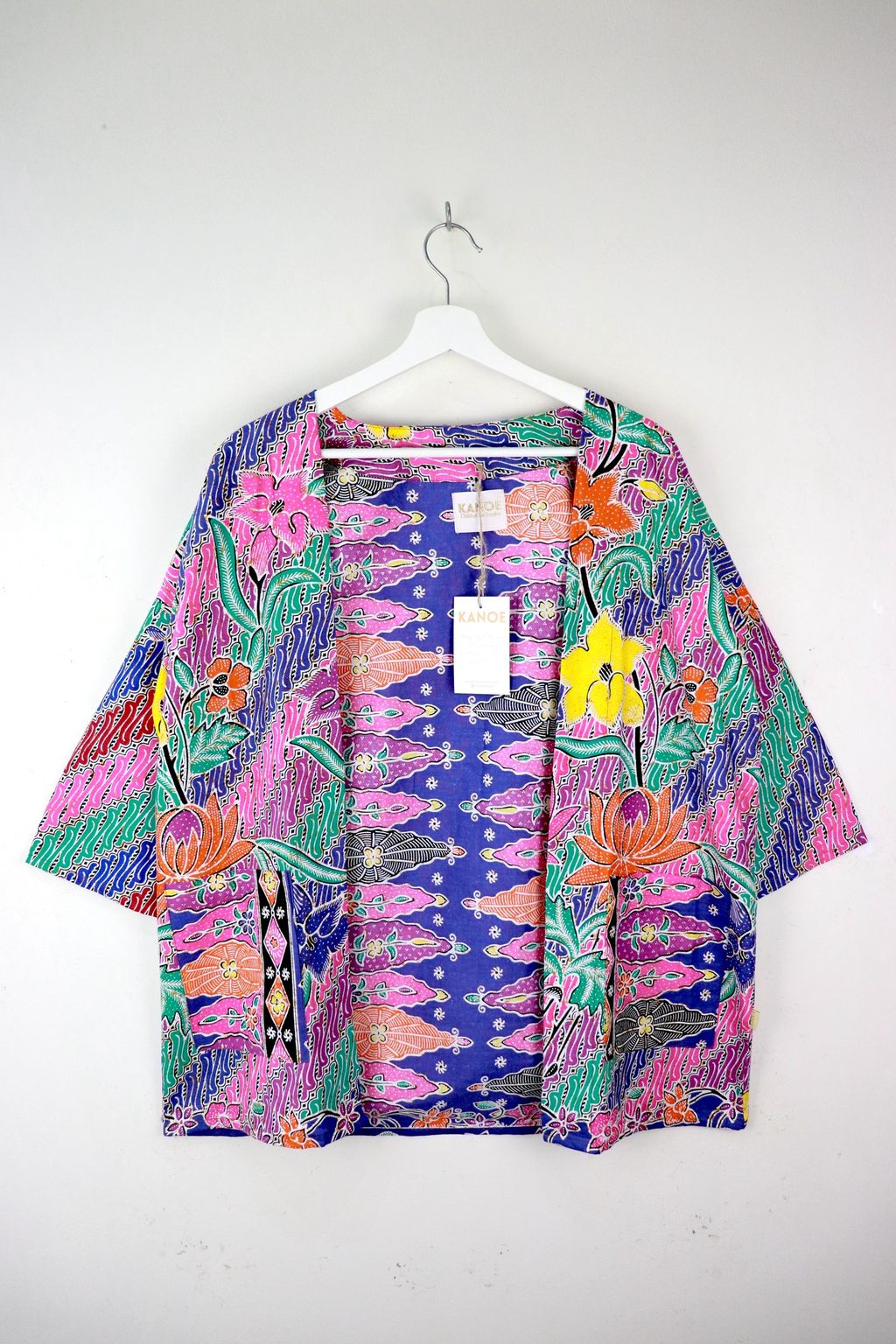 When we are stuck at home wearing a basic spaghetti strap top at home and the door bell rings, throw on this kimono before heading out to collect that parcel. Or if your boss calls you last minute for a zoom call. Throw on this batik kimono!