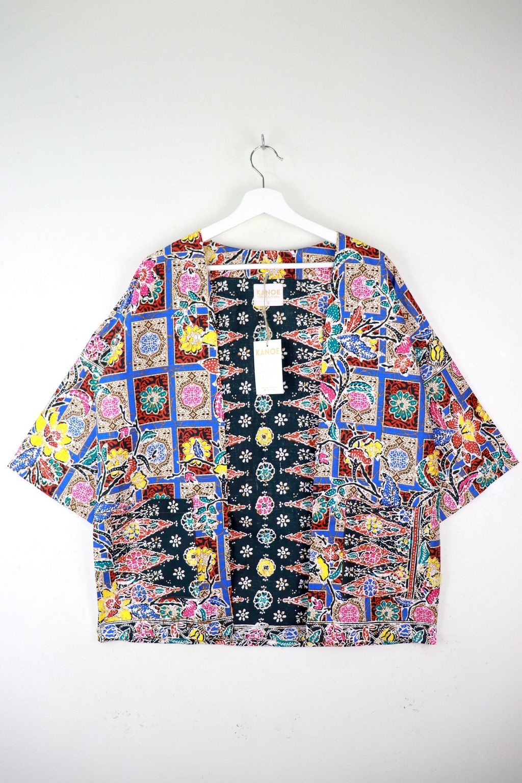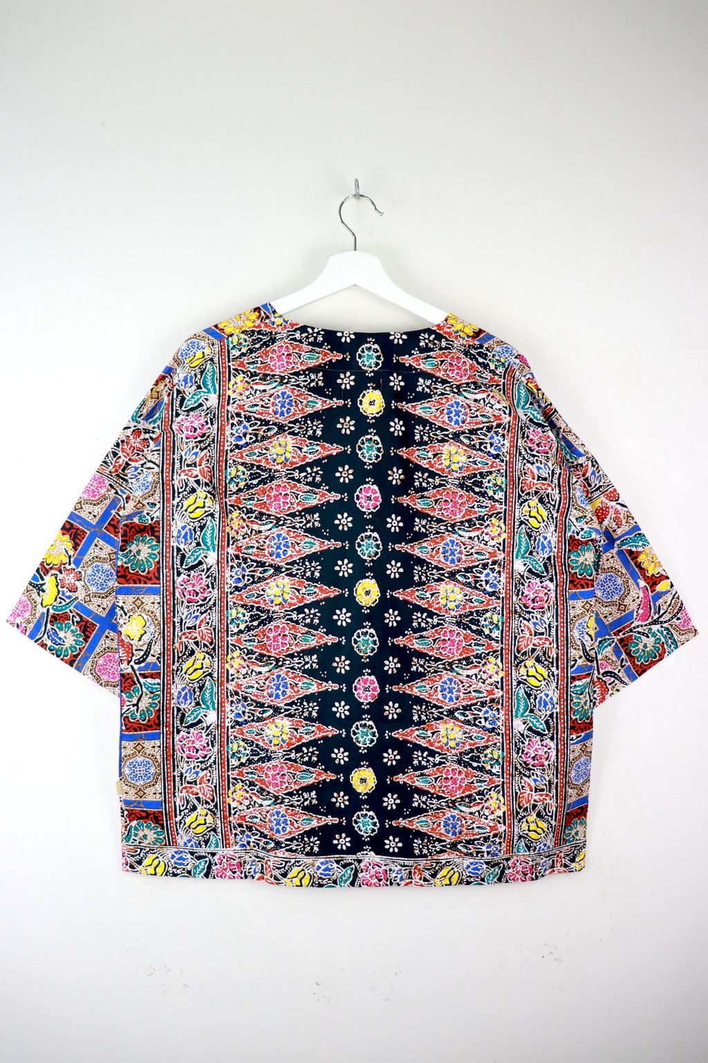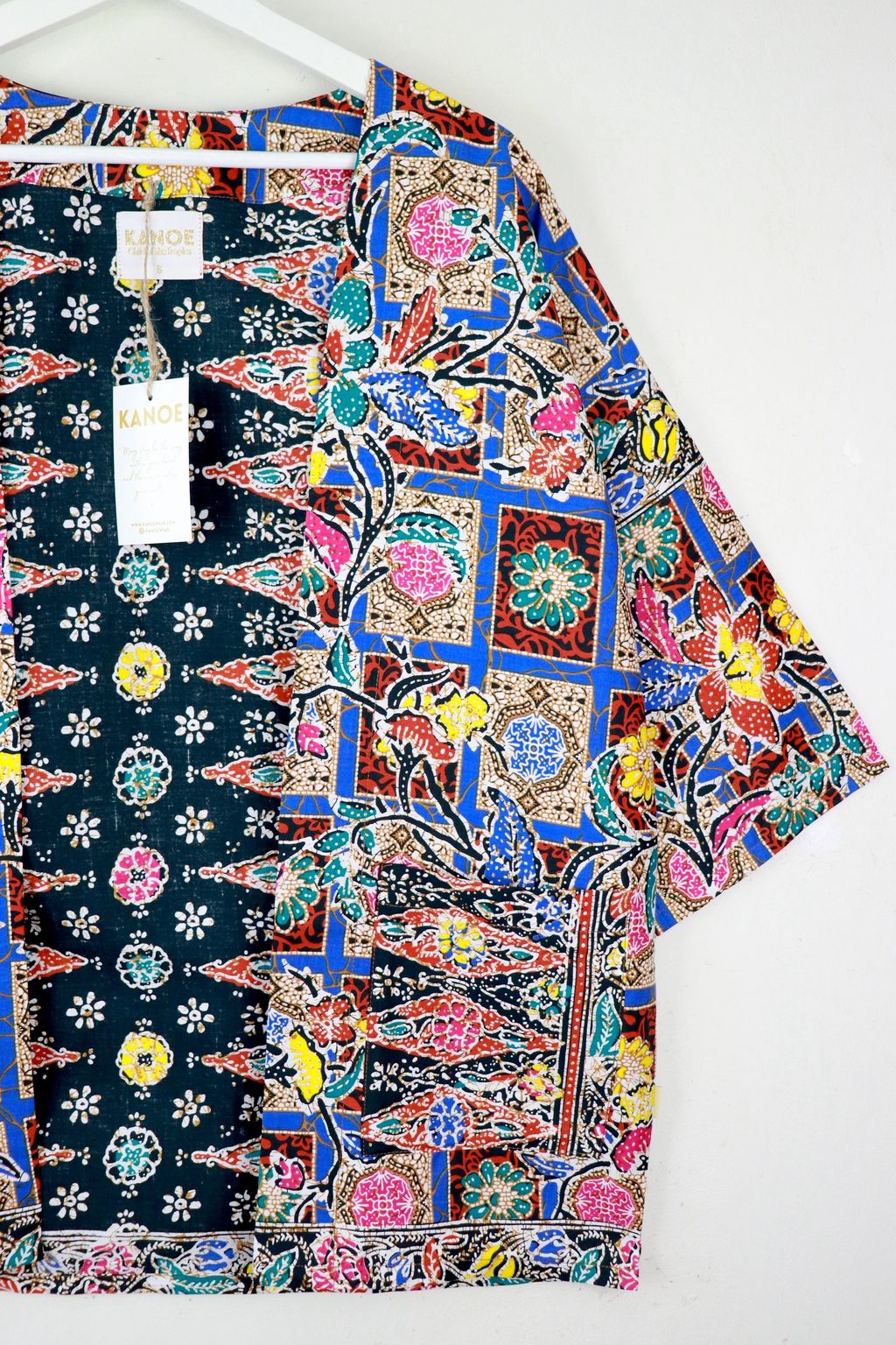 When we are stuck at home wearing a basic spaghetti strap top at home and the door bell rings, throw on this kimono before heading out to collect that parcel. Or if your boss calls you last minute for a zoom call. Throw on this batik kimono!