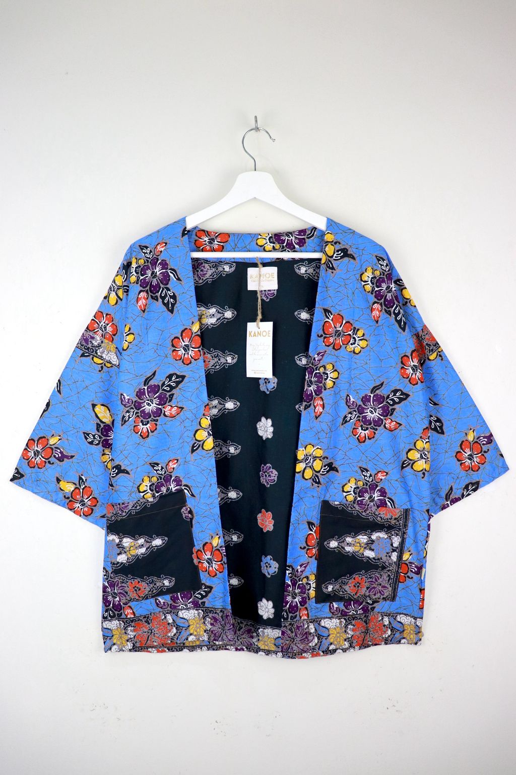 When we are stuck at home wearing a basic spaghetti strap top at home and the door bell rings, throw on this kimono before heading out to collect that parcel. Or if your boss calls you last minute for a zoom call. Throw on this batik kimono!