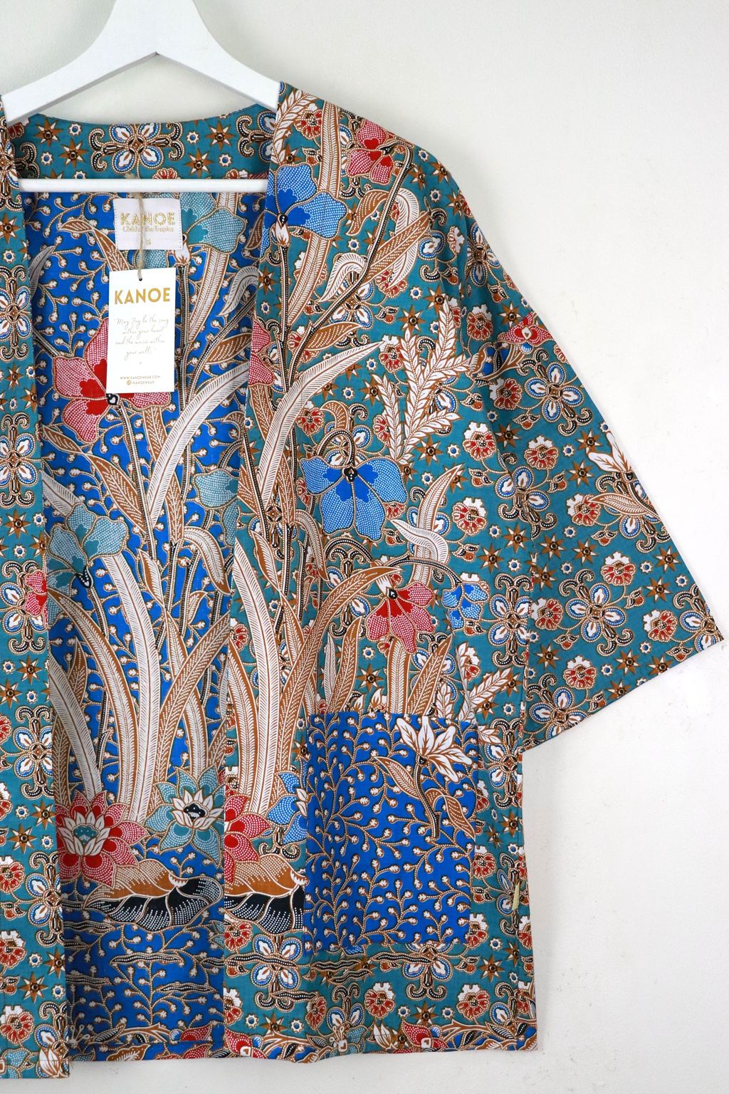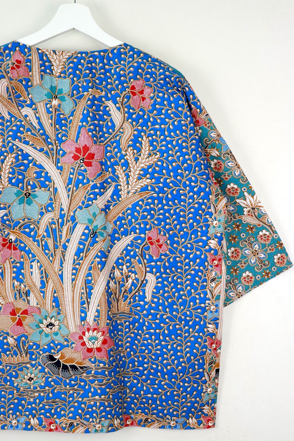 When we are stuck at home wearing a basic spaghetti strap top at home and the door bell rings, throw on this kimono before heading out to collect that parcel. Or if your boss calls you last minute for a zoom call. Throw on this batik kimono!