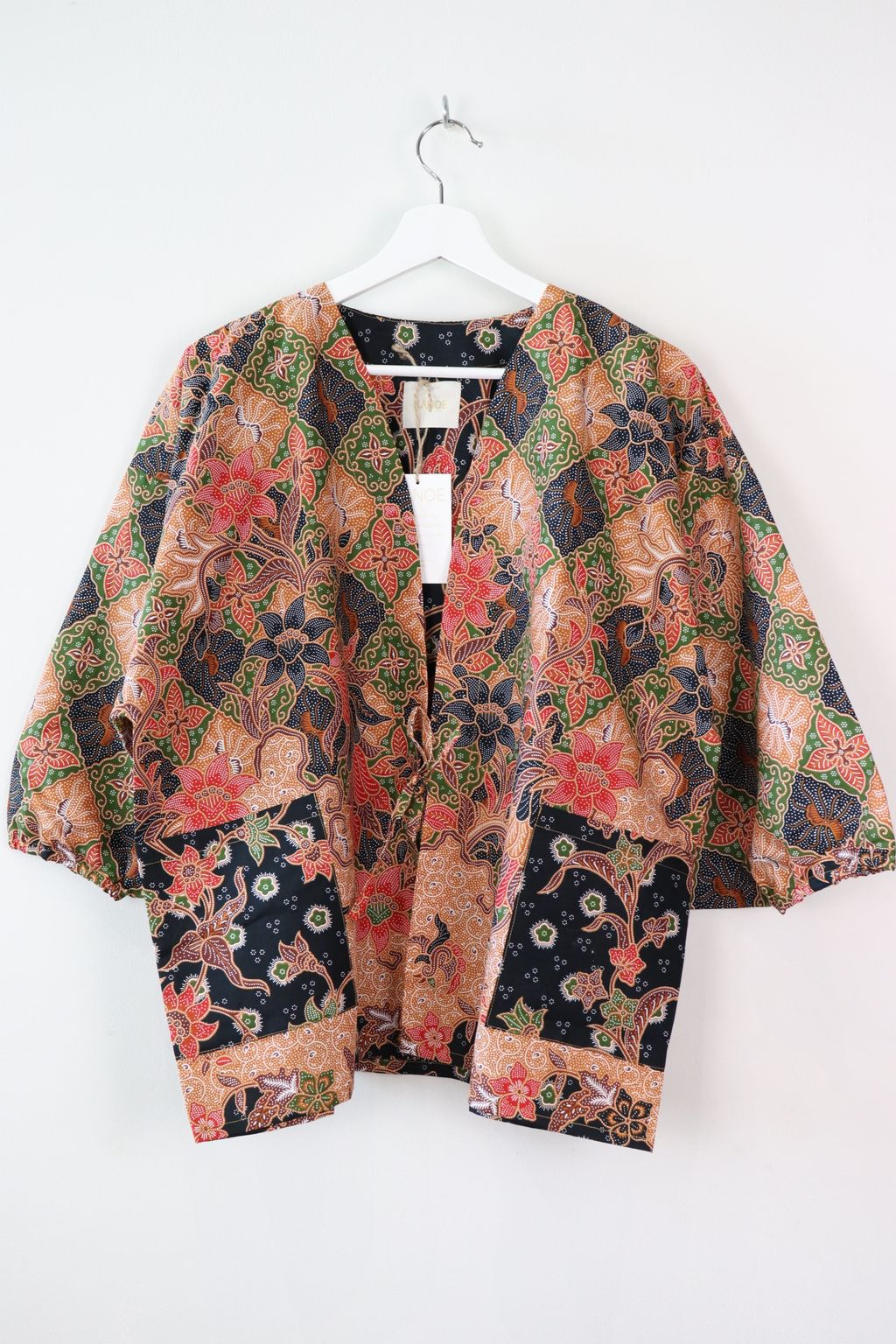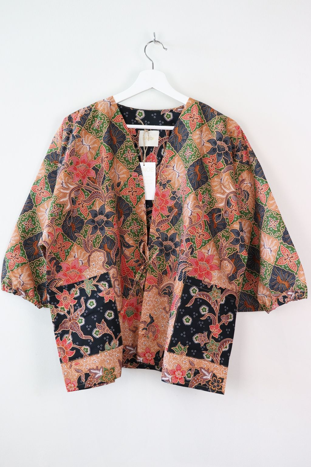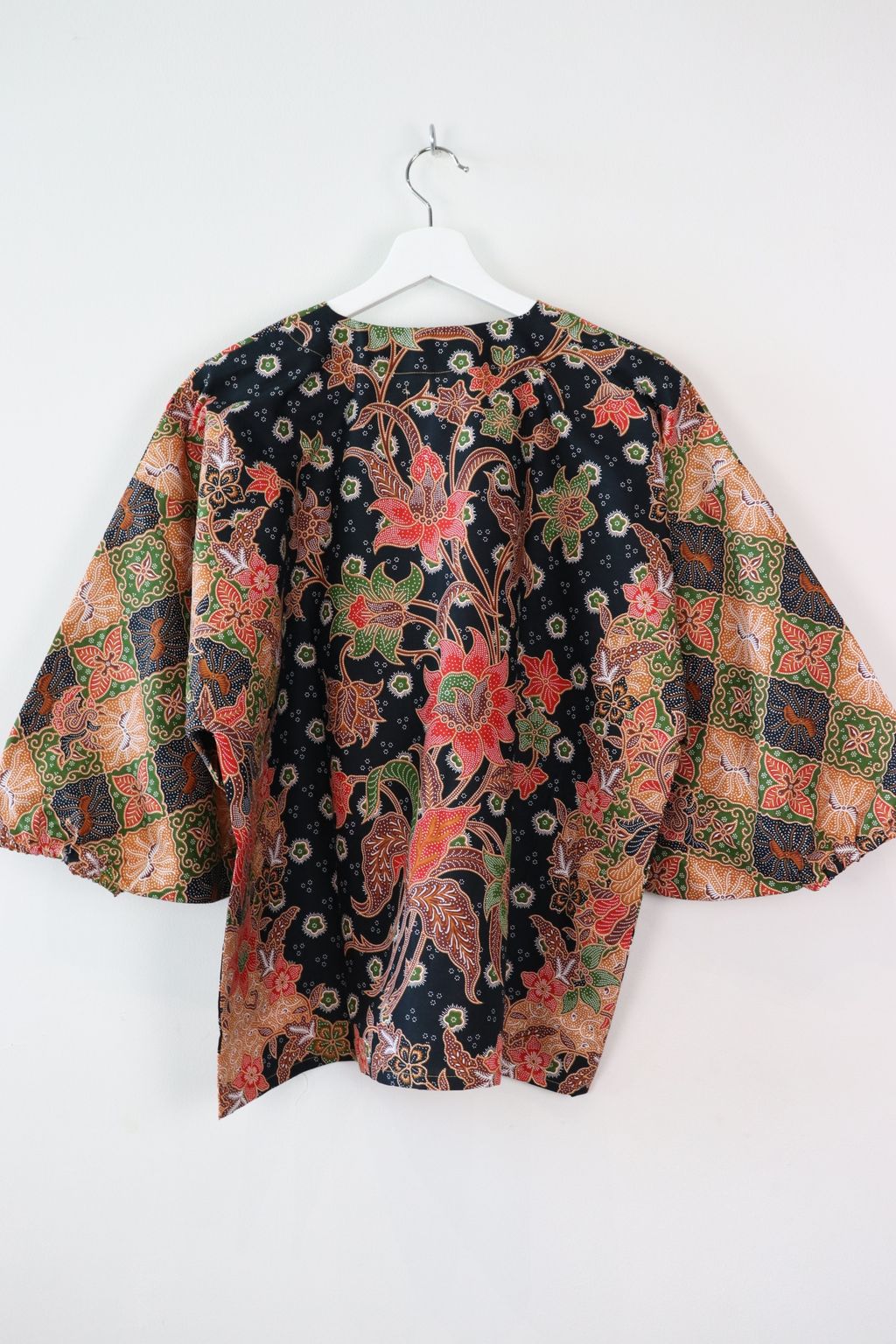 When we are stuck at home wearing a basic spaghetti strap top at home and the door bell rings, throw on this kimono before heading out to collect that parcel hehe. Or if your boss calls you last minute for a zoom call. Throw on this batik kimono :p