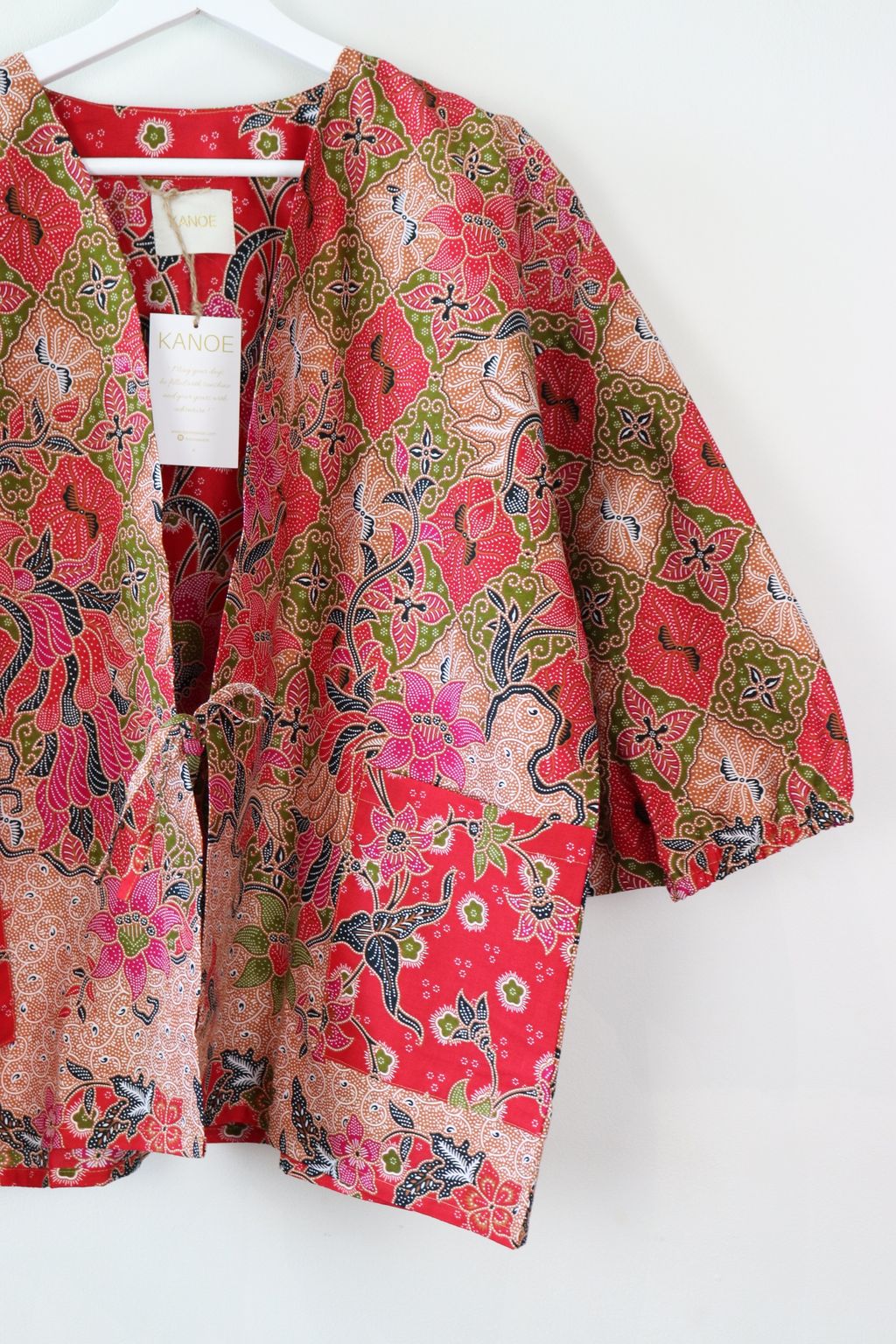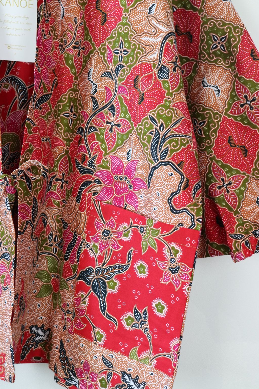 When we are stuck at home wearing a basic spaghetti strap top at home and the door bell rings, throw on this kimono before heading out to collect that parcel hehe. Or if your boss calls you last minute for a zoom call. Throw on this batik kimono :p