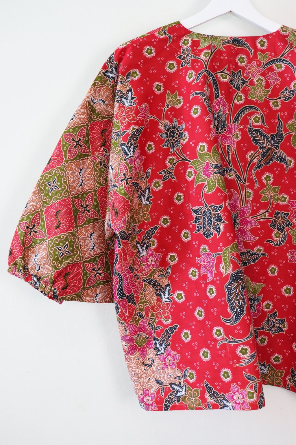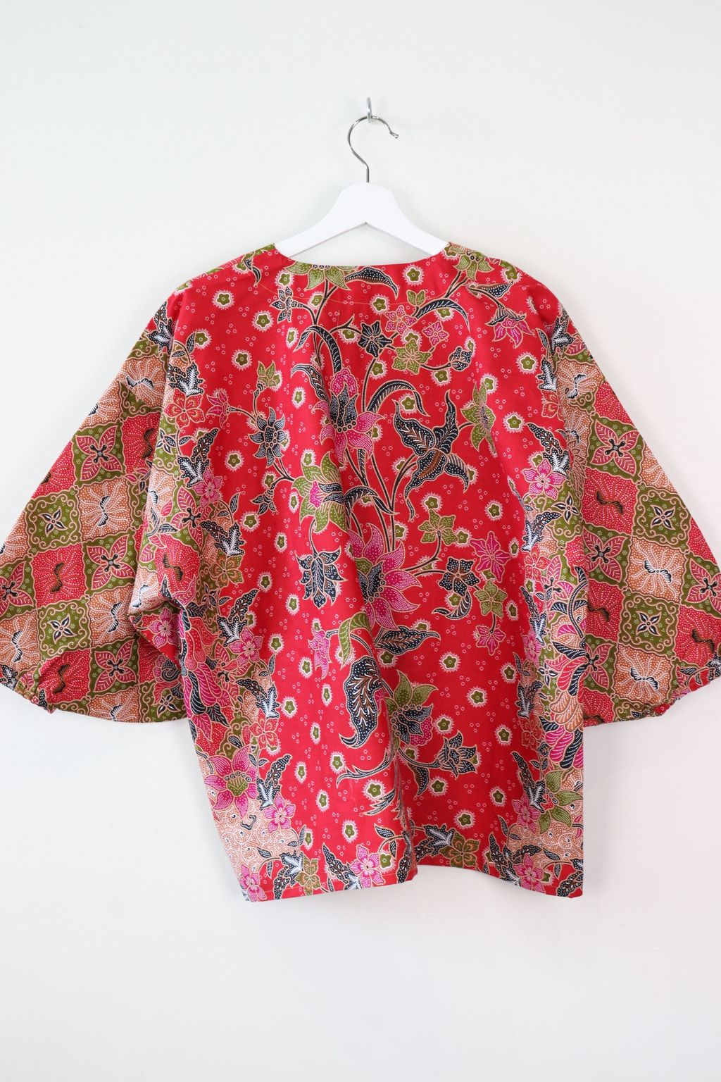 Our batik kimono worn over your basics will add that beautiful Indo-Malayan cultural touch that reminds you of your heritage or just to appreciate the art of our region. Keeps you feeling comfortable while indoors and great for those chilly rainy days. Definitely a piece for you to wear throughout the seasons. Made of 100% cotton, they are breathable and cooling, yet keeping you warm enough for comfort while indoors in the air conditioning.