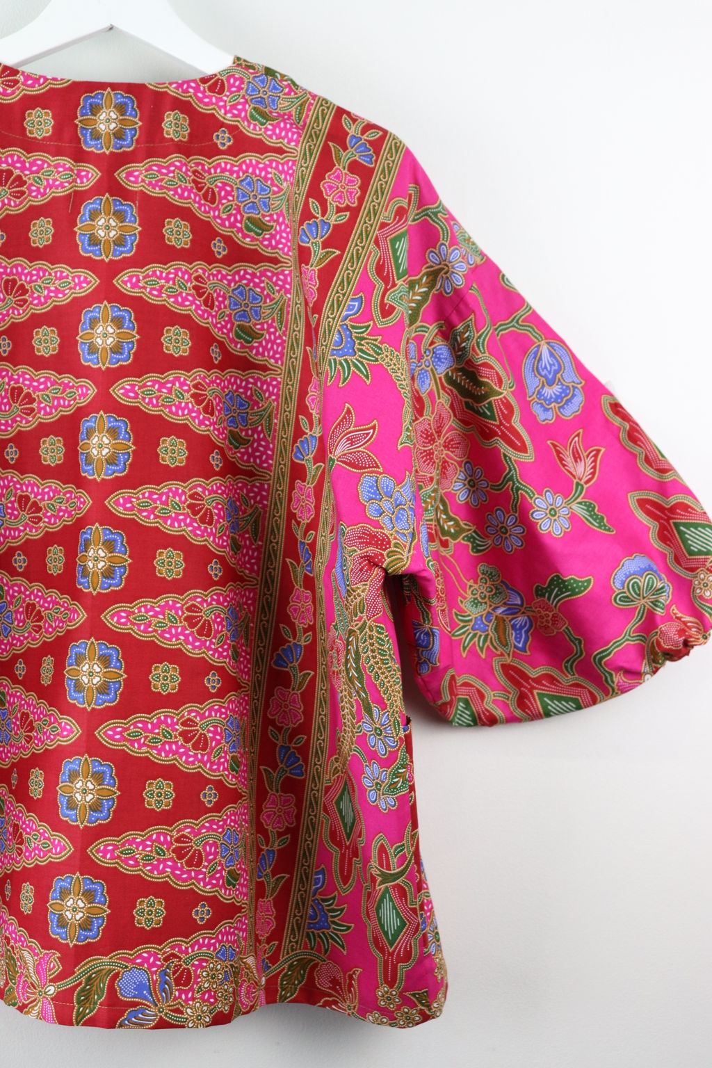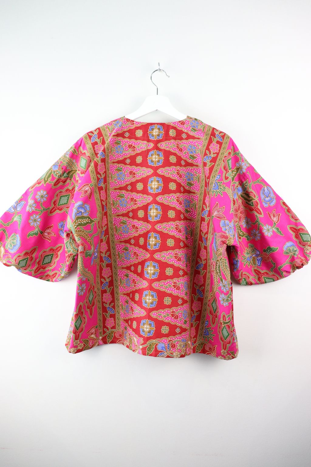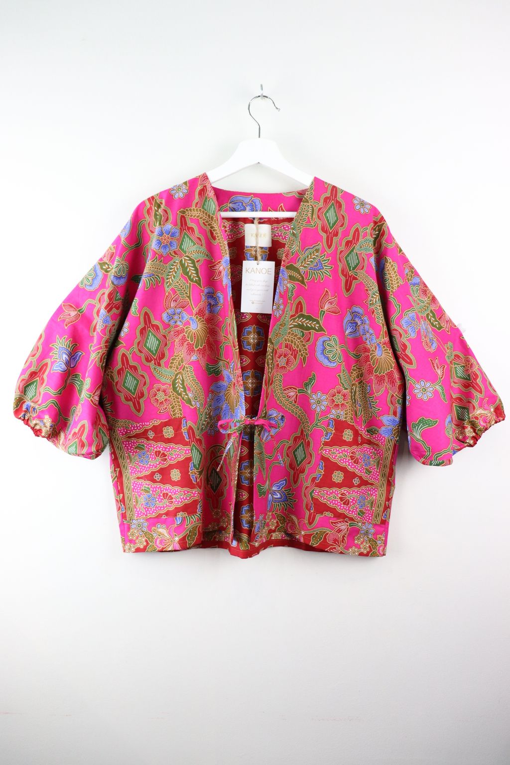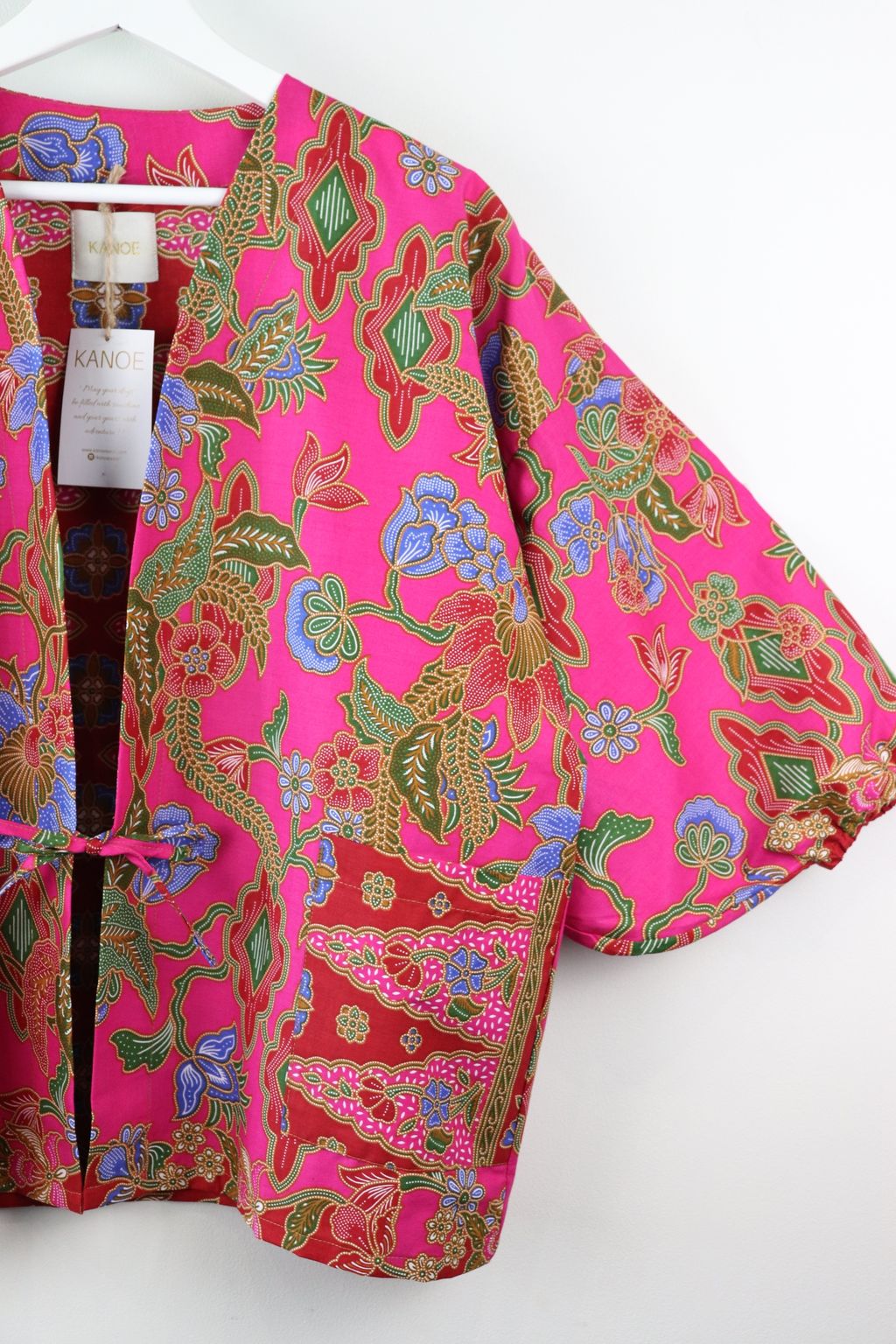When we are stuck at home wearing a basic spaghetti strap top at home and the door bell rings, throw on this kimono before heading out to collect that parcel hehe. Or if your boss calls you last minute for a zoom call. Throw on this batik kimono :p