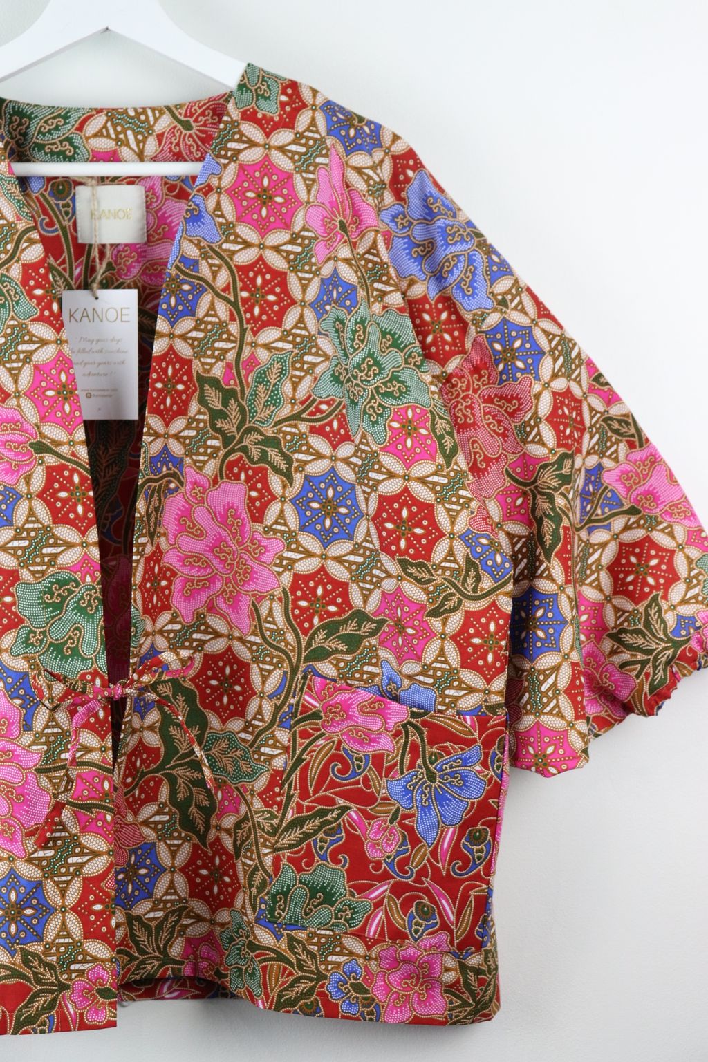 When we are stuck at home wearing a basic spaghetti strap top at home and the door bell rings, throw on this kimono before heading out to collect that parcel hehe. Or if your boss calls you last minute for a zoom call. Throw on this batik kimono :p