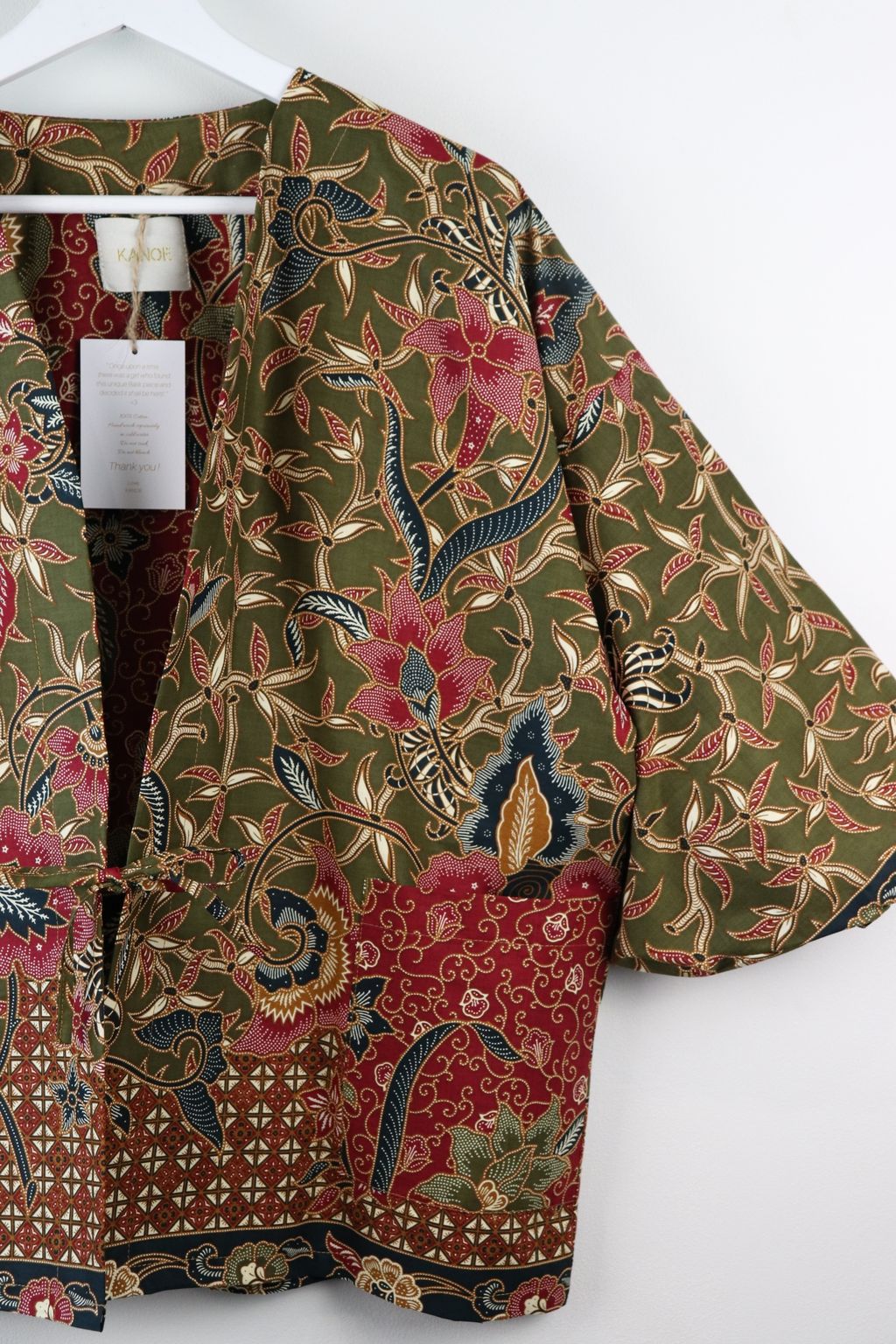 Our batik kimono worn over your basics will add that beautiful Indo-Malayan cultural touch that reminds you of your heritage or just to appreciate the art of our region. Keeps you feeling comfortable while indoors and great for those chilly rainy days. Definitely a piece for you to wear throughout the seasons. Made of 100% cotton, they are breathable and cooling, yet keeping you warm enough for comfort while indoors in the air conditioning.