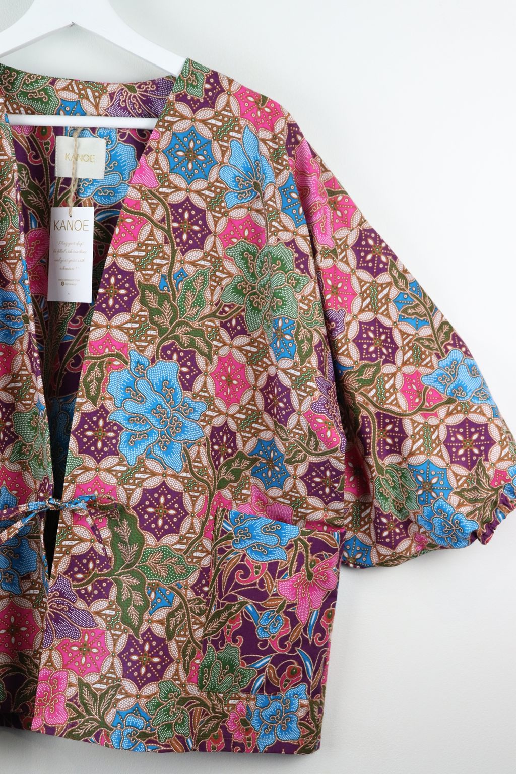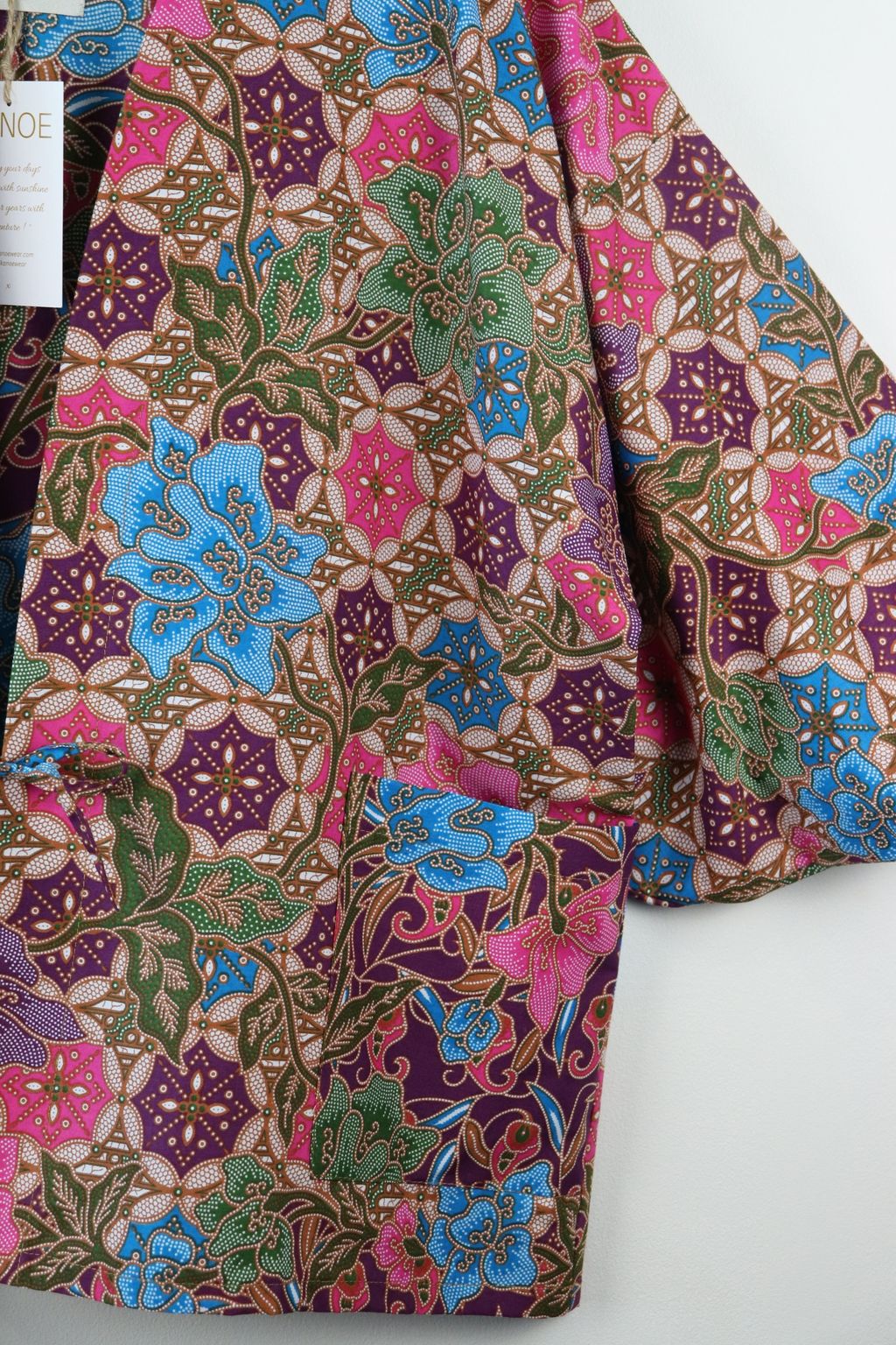 Our batik kimono worn over your basics will add that beautiful Indo-Malayan cultural touch that reminds you of your heritage or just to appreciate the art of our region. Keeps you feeling comfortable while indoors and great for those chilly rainy days. Definitely a piece for you to wear throughout the seasons. Made of 100% cotton, they are breathable and cooling, yet keeping you warm enough for comfort while indoors in the air conditioning.