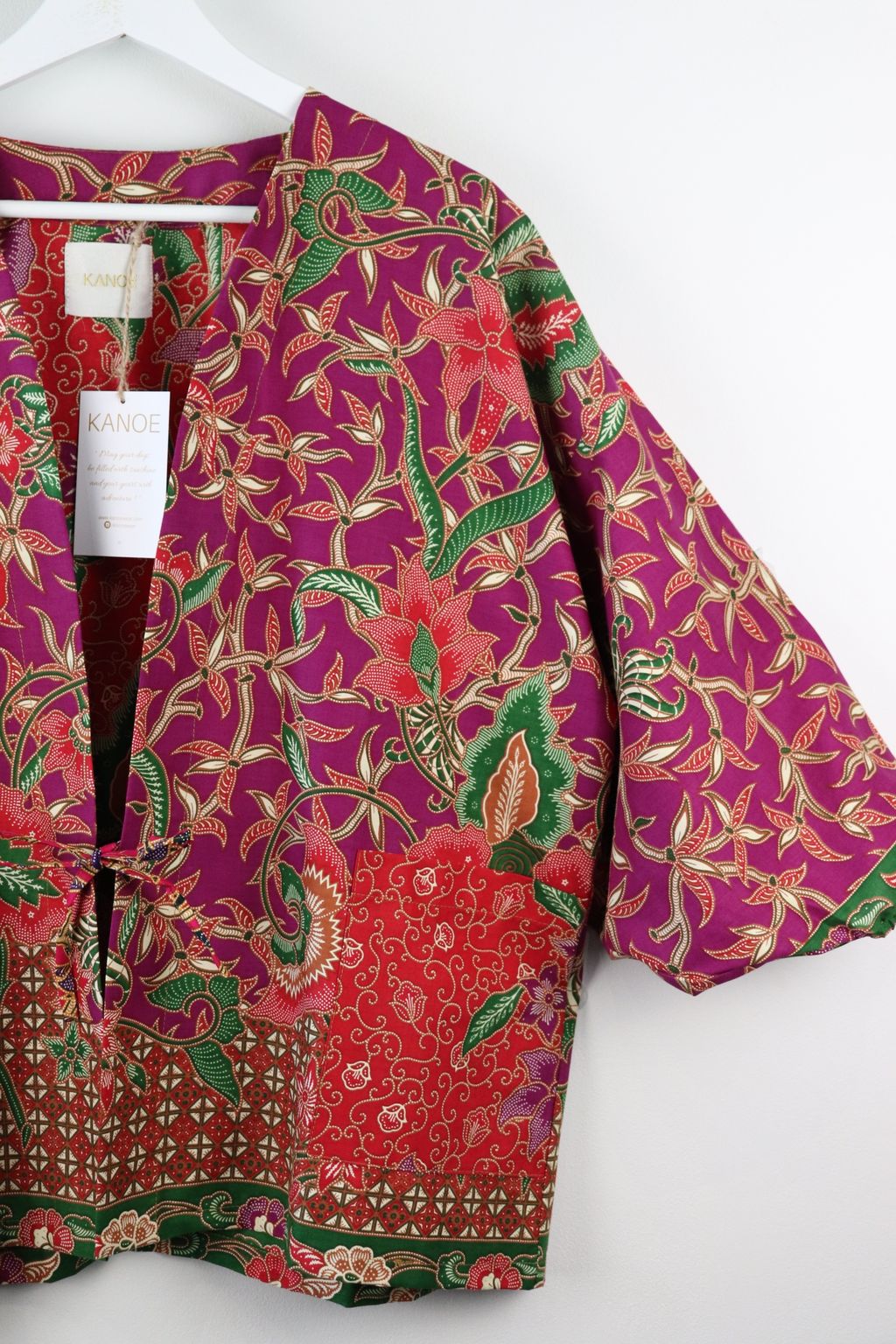 Our batik kimono worn over your basics will add that beautiful Indo-Malayan cultural touch that reminds you of your heritage or just to appreciate the art of our region. Keeps you feeling comfortable while indoors and great for those chilly rainy days. Definitely a piece for you to wear throughout the seasons. Made of 100% cotton, they are breathable and cooling, yet keeping you warm enough for comfort while indoors in the air conditioning.