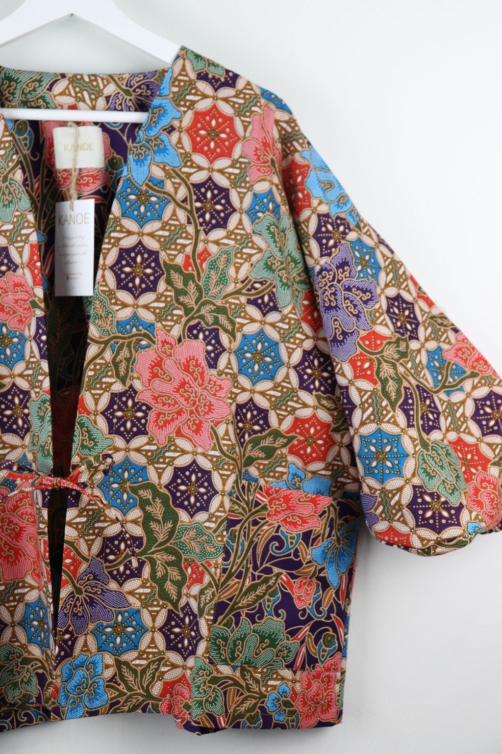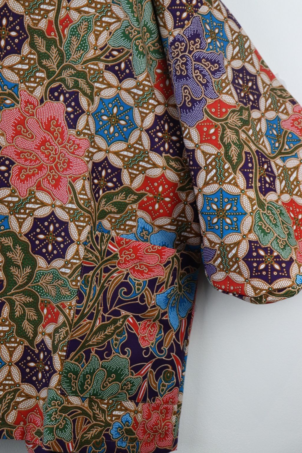When we are stuck at home wearing a basic spaghetti strap top at home and the door bell rings, throw on this kimono before heading out to collect that parcel hehe. Or if your boss calls you last minute for a zoom call. Throw on this batik kimono :p