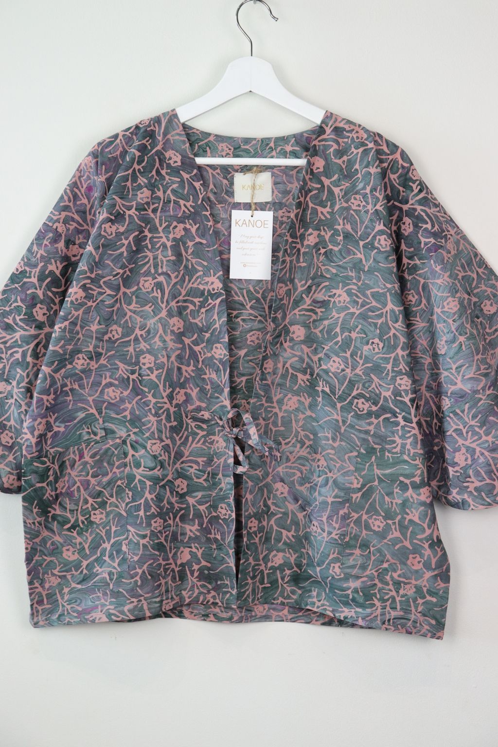 When we are stuck at home wearing a basic spaghetti strap top at home and the door bell rings, throw on this kimono before heading out to collect that parcel hehe. Or if your boss calls you last minute for a zoom call. Throw on this batik kimono :p