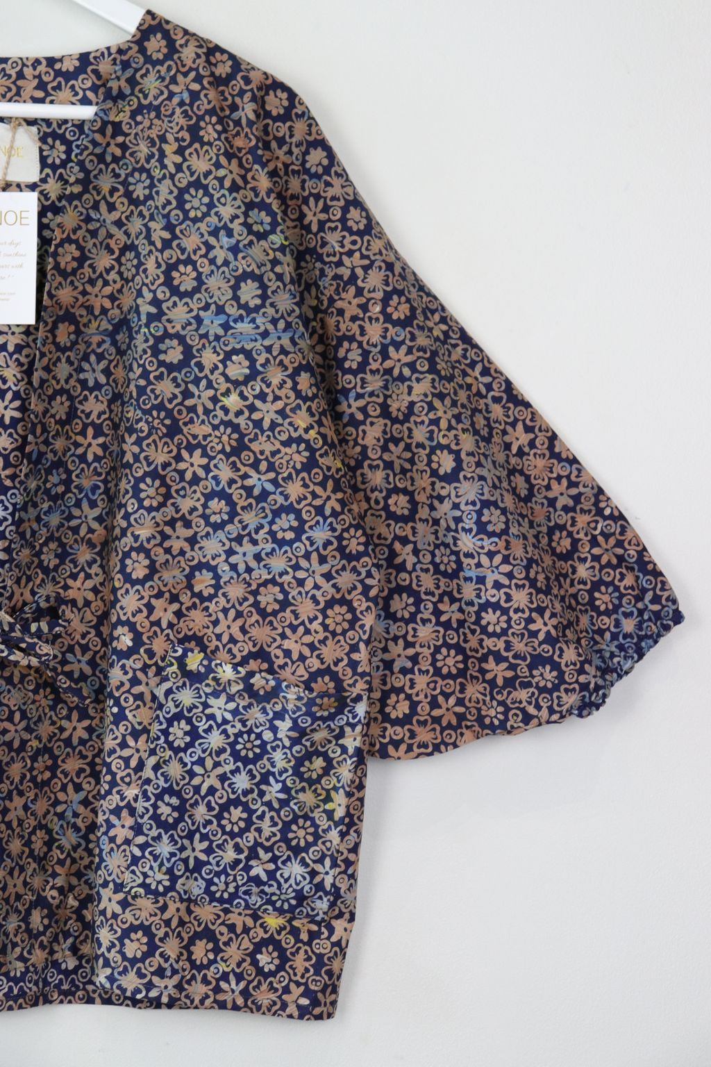 Our batik kimono worn over your basics will add that beautiful Indo-Malayan cultural touch that reminds you of your heritage or just to appreciate the art of our region. Keeps you feeling comfortable while indoors and great for those chilly rainy days. Definitely a piece for you to wear throughout the seasons. Made of 100% cotton, they are breathable and cooling, yet keeping you warm enough for comfort while indoors in the air conditioning.