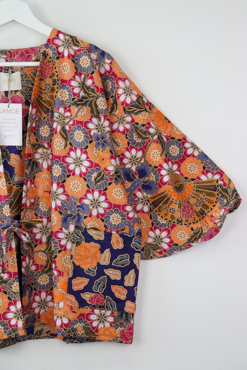 Our batik kimono worn over your basics will add that beautiful Indo-Malayan cultural touch that reminds you of your heritage or just to appreciate the art of our region. Keeps you feeling comfortable while indoors and great for those chilly rainy days. Definitely a piece for you to wear throughout the seasons. Made of 100% cotton, they are breathable and cooling, yet keeping you warm enough for comfort while indoors in the air conditioning.