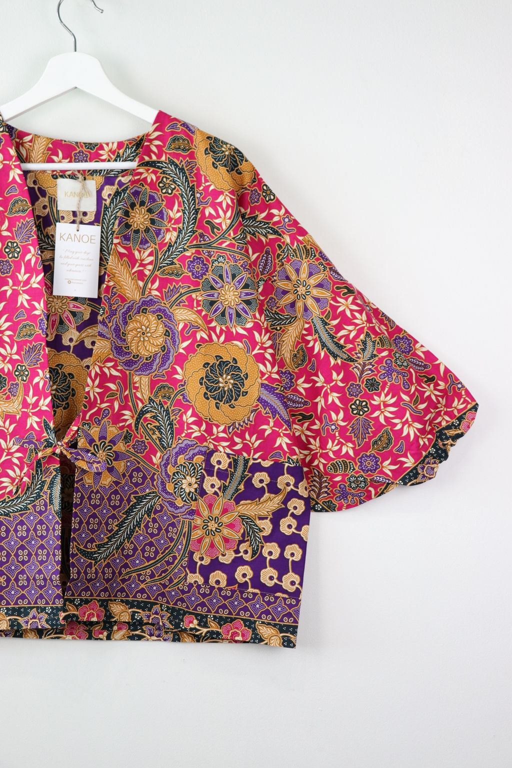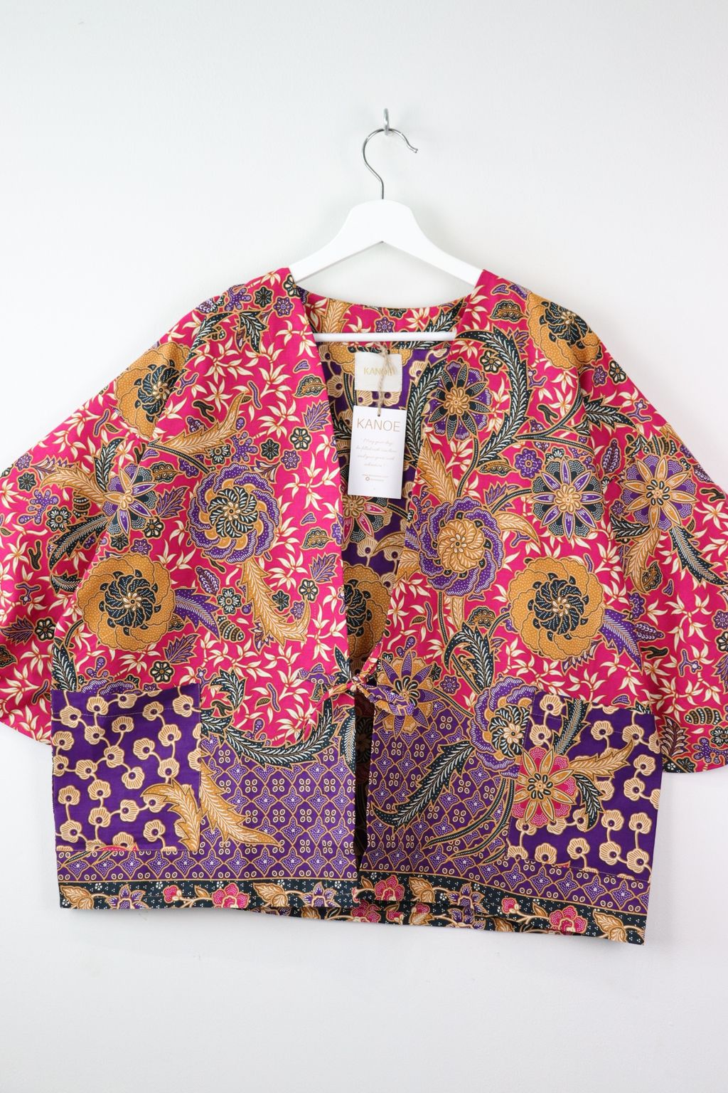 When we are stuck at home wearing a basic spaghetti strap top at home and the door bell rings, throw on this kimono before heading out to collect that parcel hehe. Or if your boss calls you last minute for a zoom call. Throw on this batik kimono :p