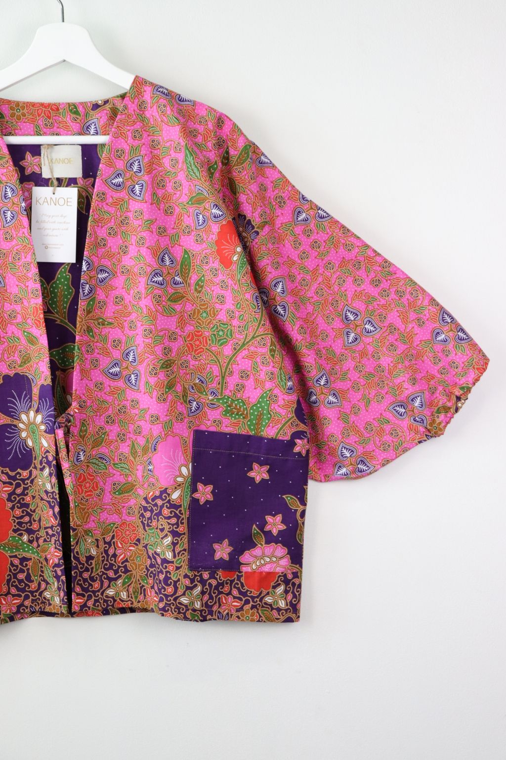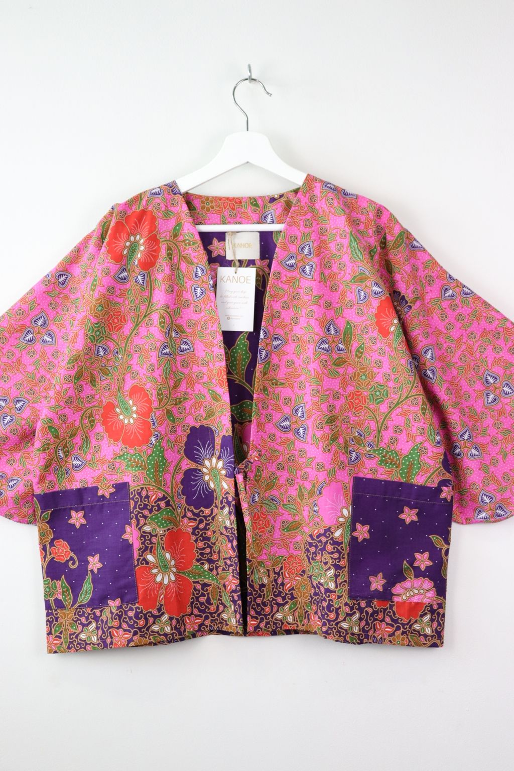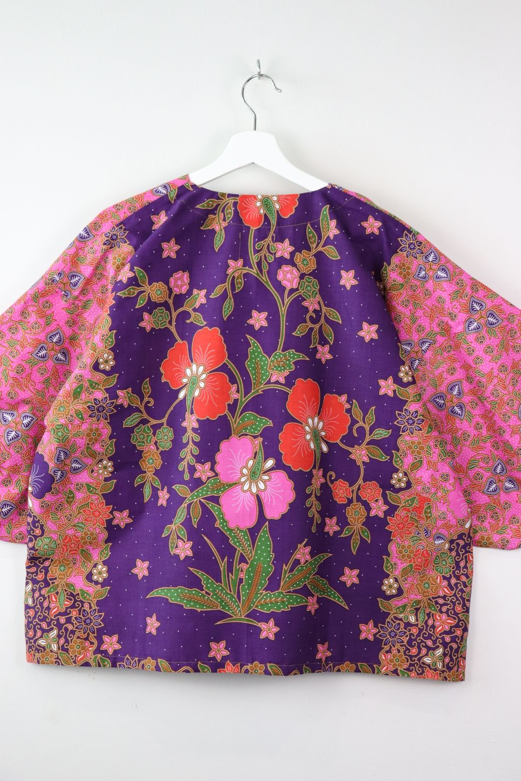 When we are stuck at home wearing a basic spaghetti strap top at home and the door bell rings, throw on this kimono before heading out to collect that parcel hehe. Or if your boss calls you last minute for a zoom call. Throw on this batik kimono :p