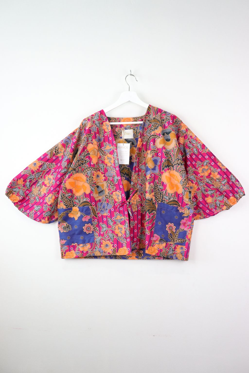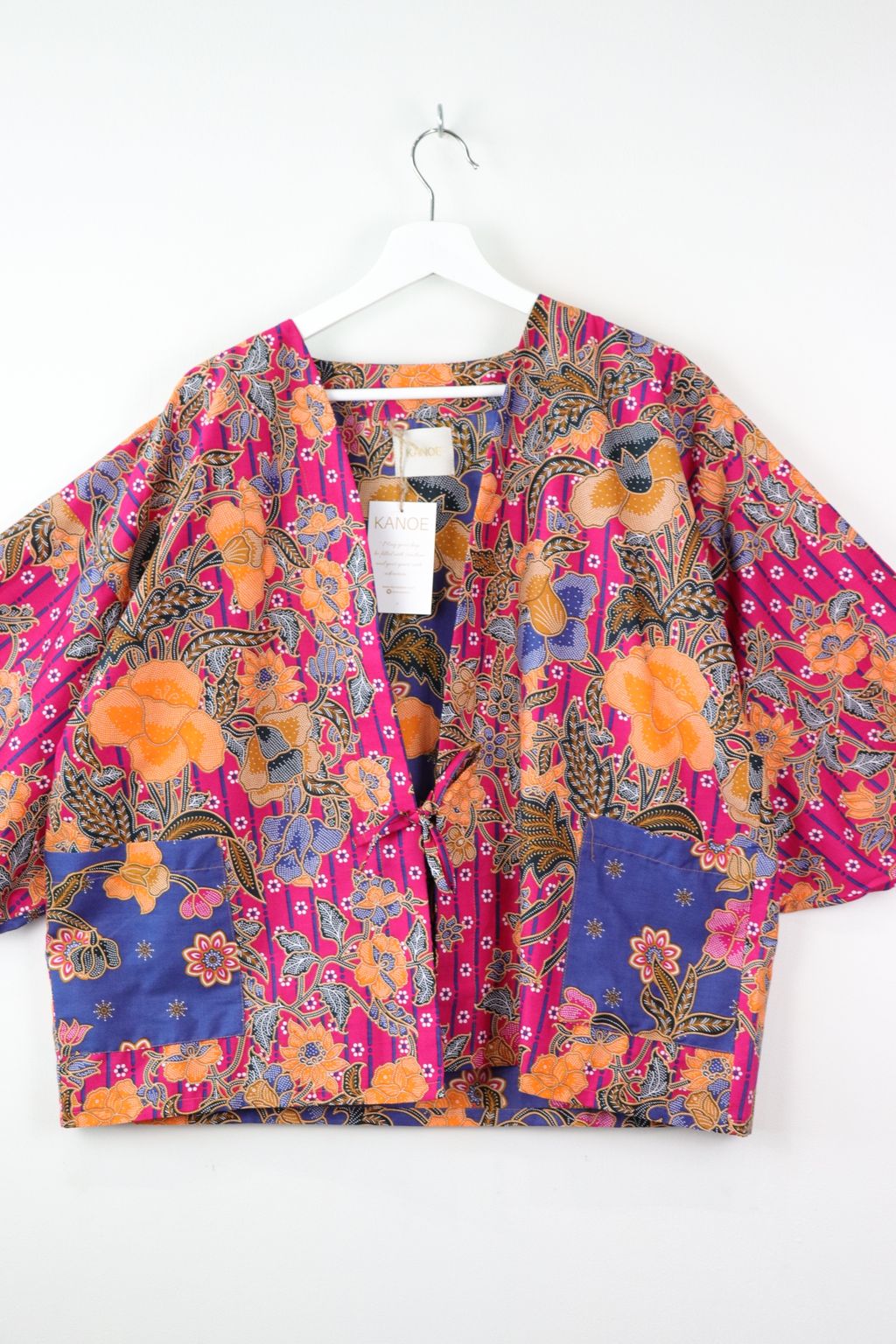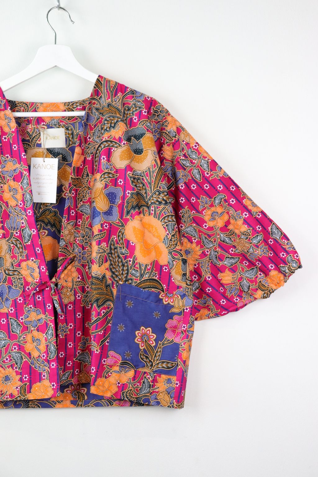 When we are stuck at home wearing a basic spaghetti strap top at home and the door bell rings, throw on this kimono before heading out to collect that parcel hehe. Or if your boss calls you last minute for a zoom call. Throw on this batik kimono :p