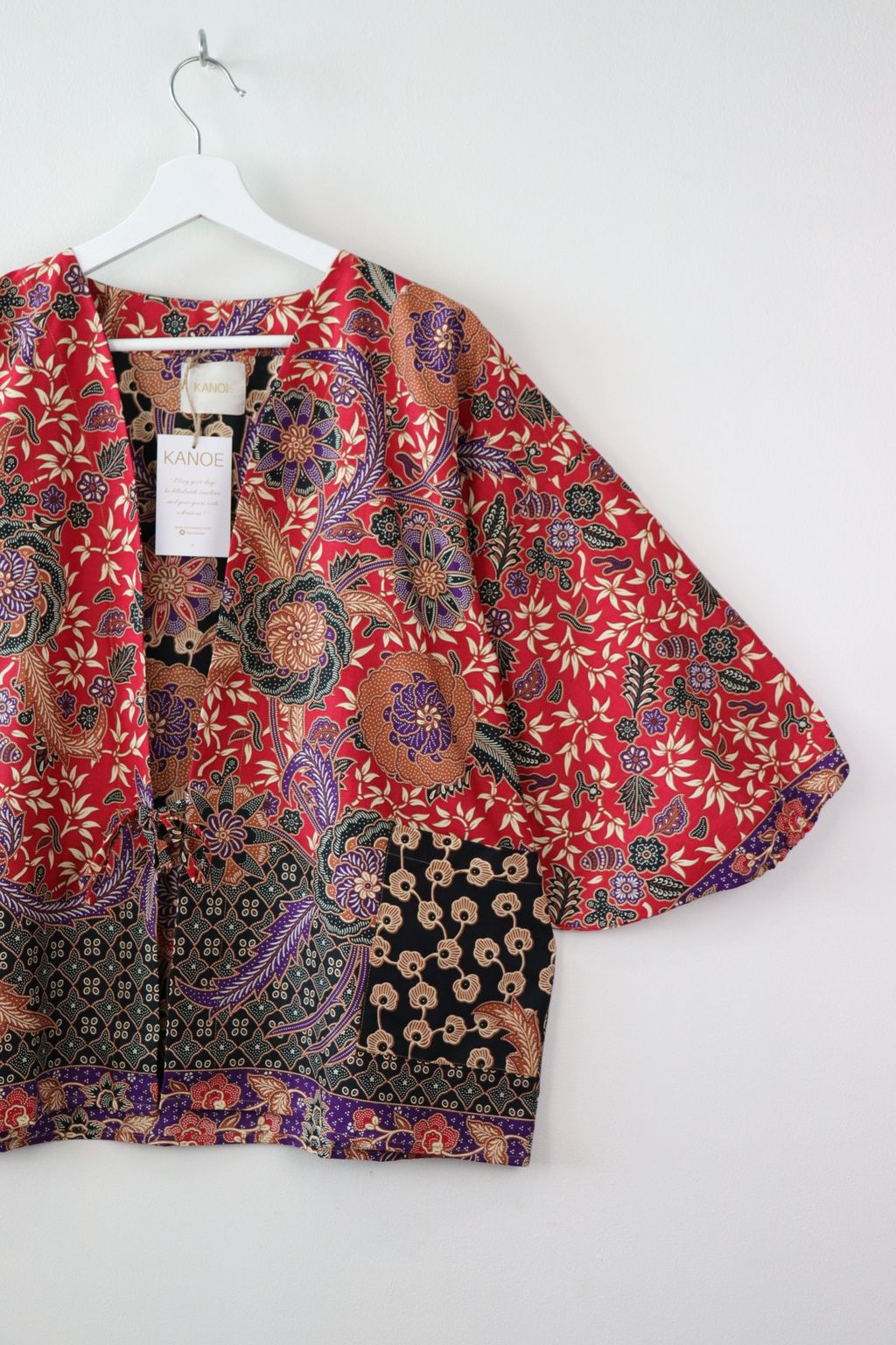 When we are stuck at home wearing a basic spaghetti strap top at home and the door bell rings, throw on this kimono before heading out to collect that parcel hehe. Or if your boss calls you last minute for a zoom call. Throw on this batik kimono :p