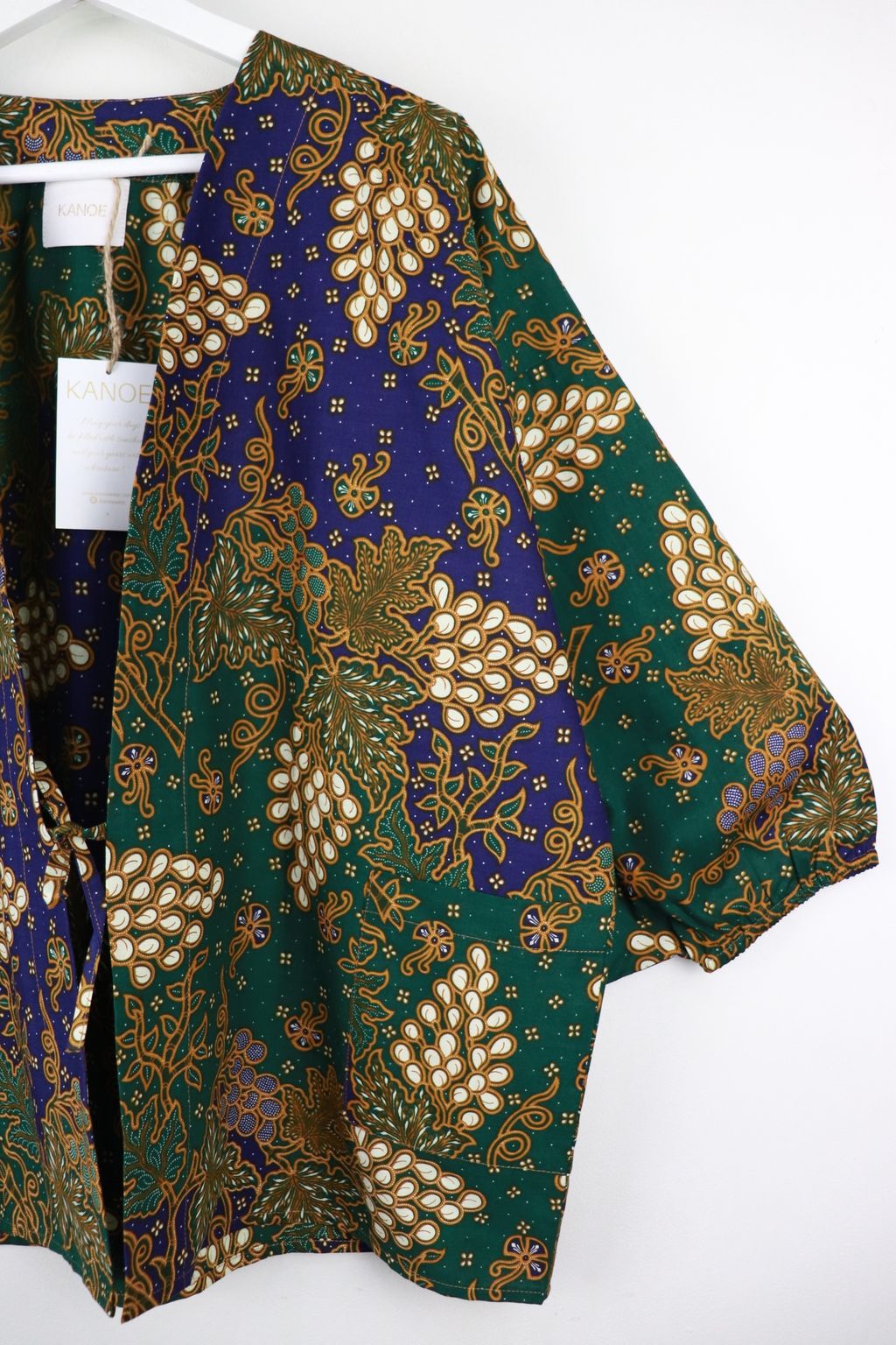 Our batik kimono worn over your basics will add that beautiful Indo-Malayan cultural touch that reminds you of your heritage or just to appreciate the art of our region. Keeps you feeling comfortable while indoors and great for those chilly rainy days. Definitely a piece for you to wear throughout the seasons. Made of 100% cotton, they are breathable and cooling, yet keeping you warm enough for comfort while indoors in the air conditioning.
