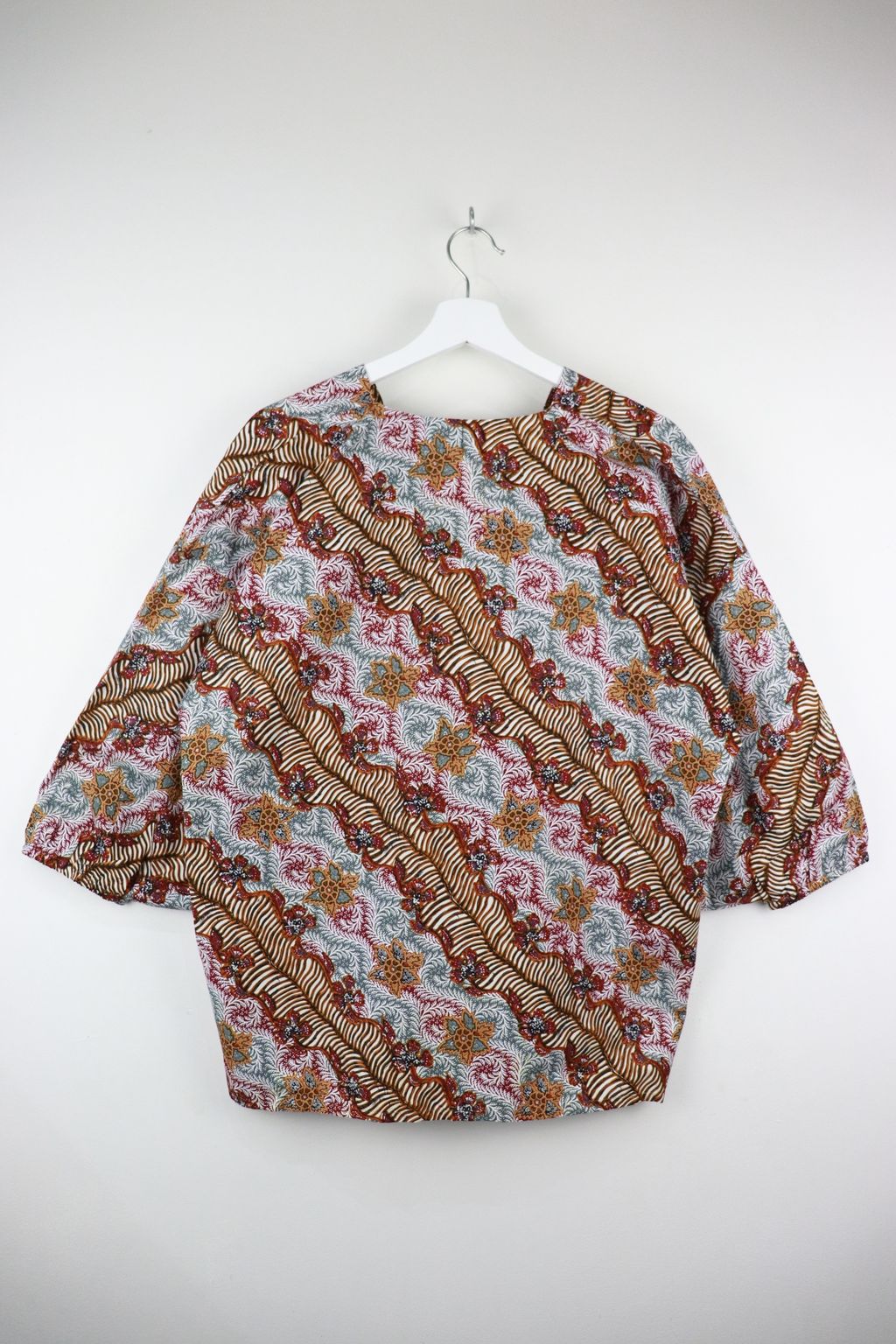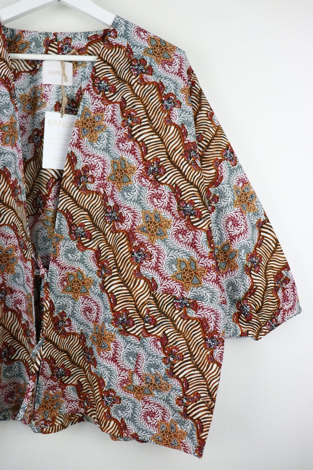 When we are stuck at home wearing a basic spaghetti strap top at home and the door bell rings, throw on this kimono before heading out to collect that parcel hehe. Or if your boss calls you last minute for a zoom call. Throw on this batik kimono :p