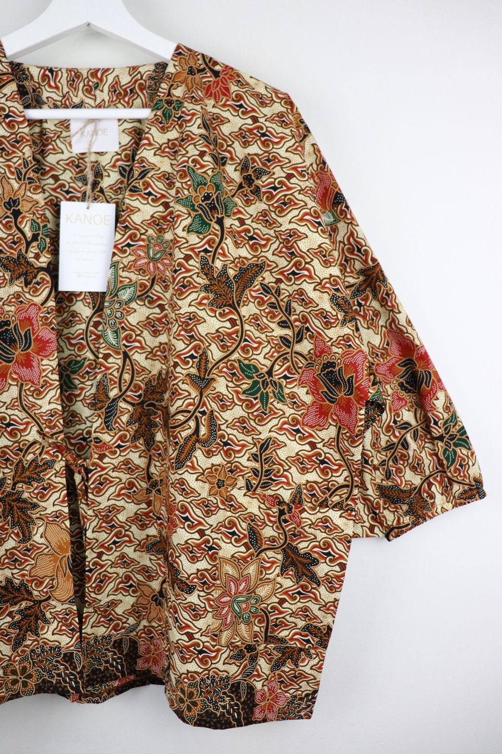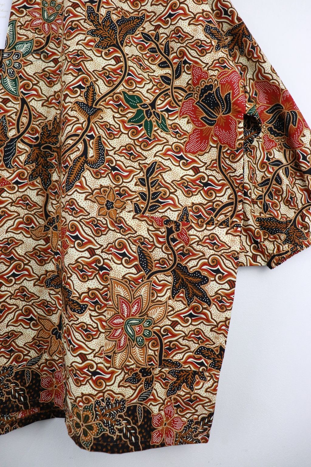 Our batik kimono worn over your basics will add that beautiful Indo-Malayan cultural touch that reminds you of your heritage or just to appreciate the art of our region. Keeps you feeling comfortable while indoors and great for those chilly rainy days. Definitely a piece for you to wear throughout the seasons. Made of 100% cotton, they are breathable and cooling, yet keeping you warm enough for comfort while indoors in the air conditioning.