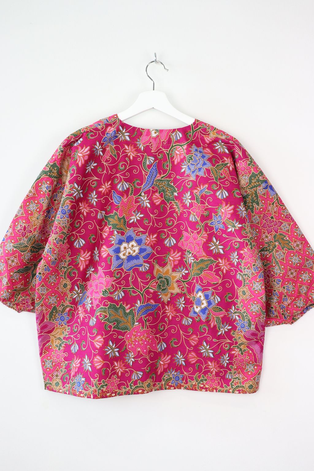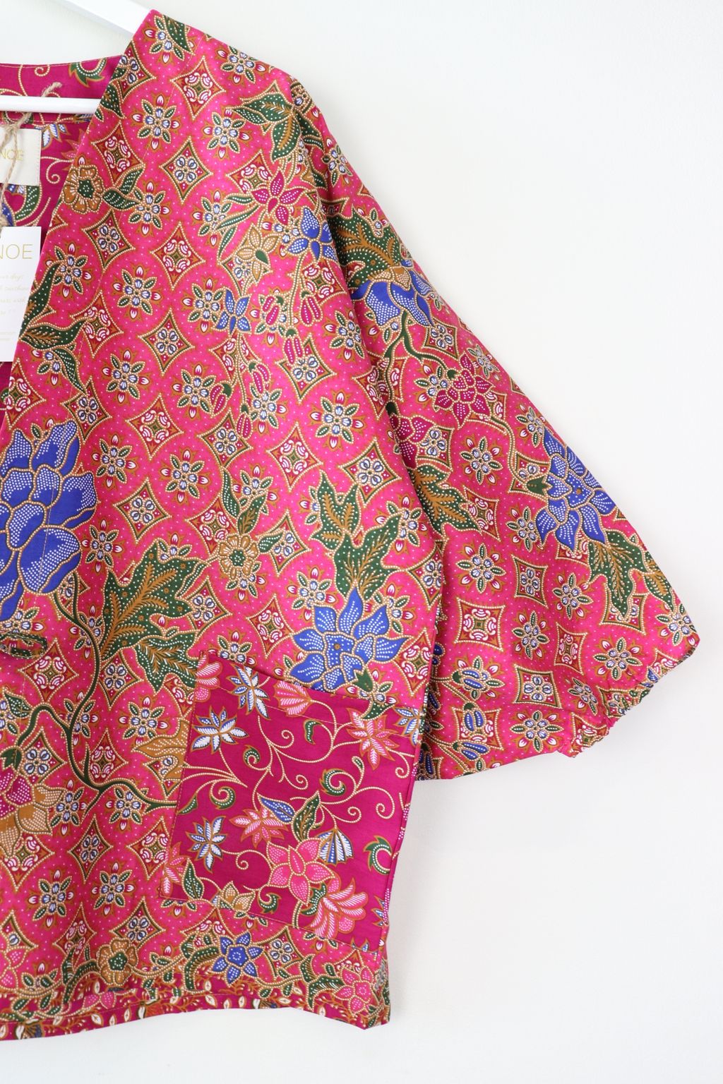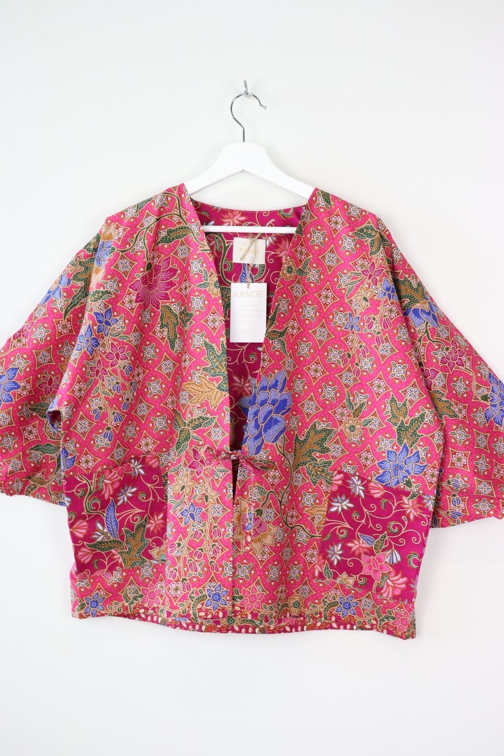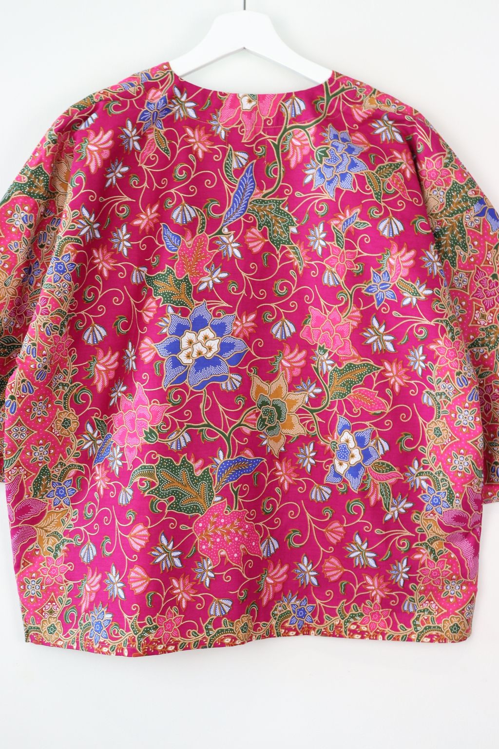 When we are stuck at home wearing a basic spaghetti strap top at home and the door bell rings, throw on this kimono before heading out to collect that parcel hehe. Or if your boss calls you last minute for a zoom call. Throw on this batik kimono :p
