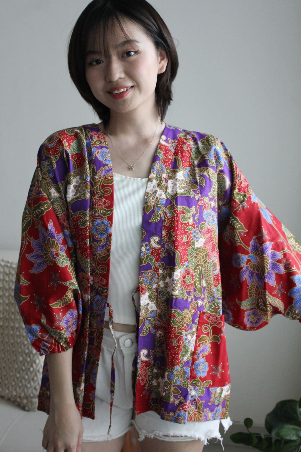This fall, of rain and cool breeze. We have for you our batik Kimono's. Something for you to wear throughout the seasons. Made of 100% cotton, they are breathable and cooling, yet keeping you warm enough for comfort while indoors in the air conditioning.