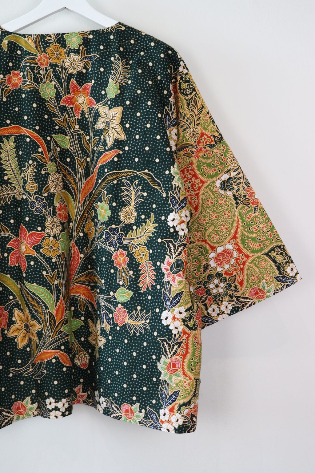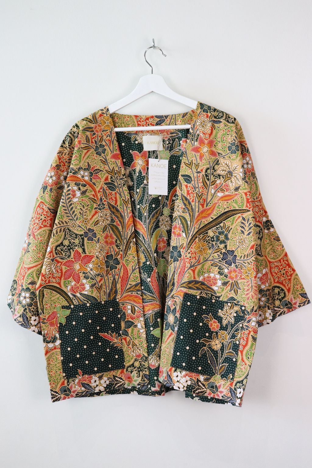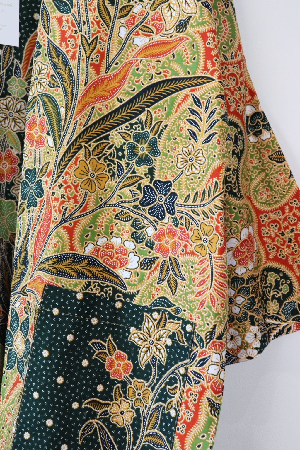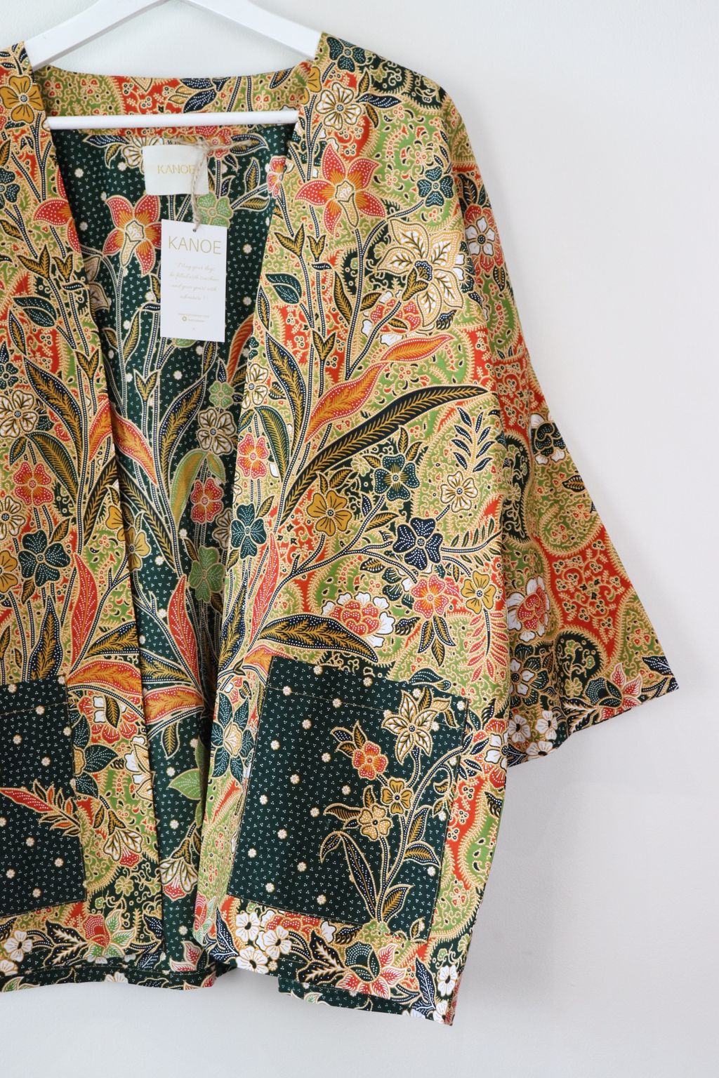 When we are stuck at home wearing a basic spaghetti strap top at home and the door bell rings, throw on this kimono before heading out to collect that parcel hehe. Or if your boss calls you last minute for a zoom call. Throw on this batik kimono :p